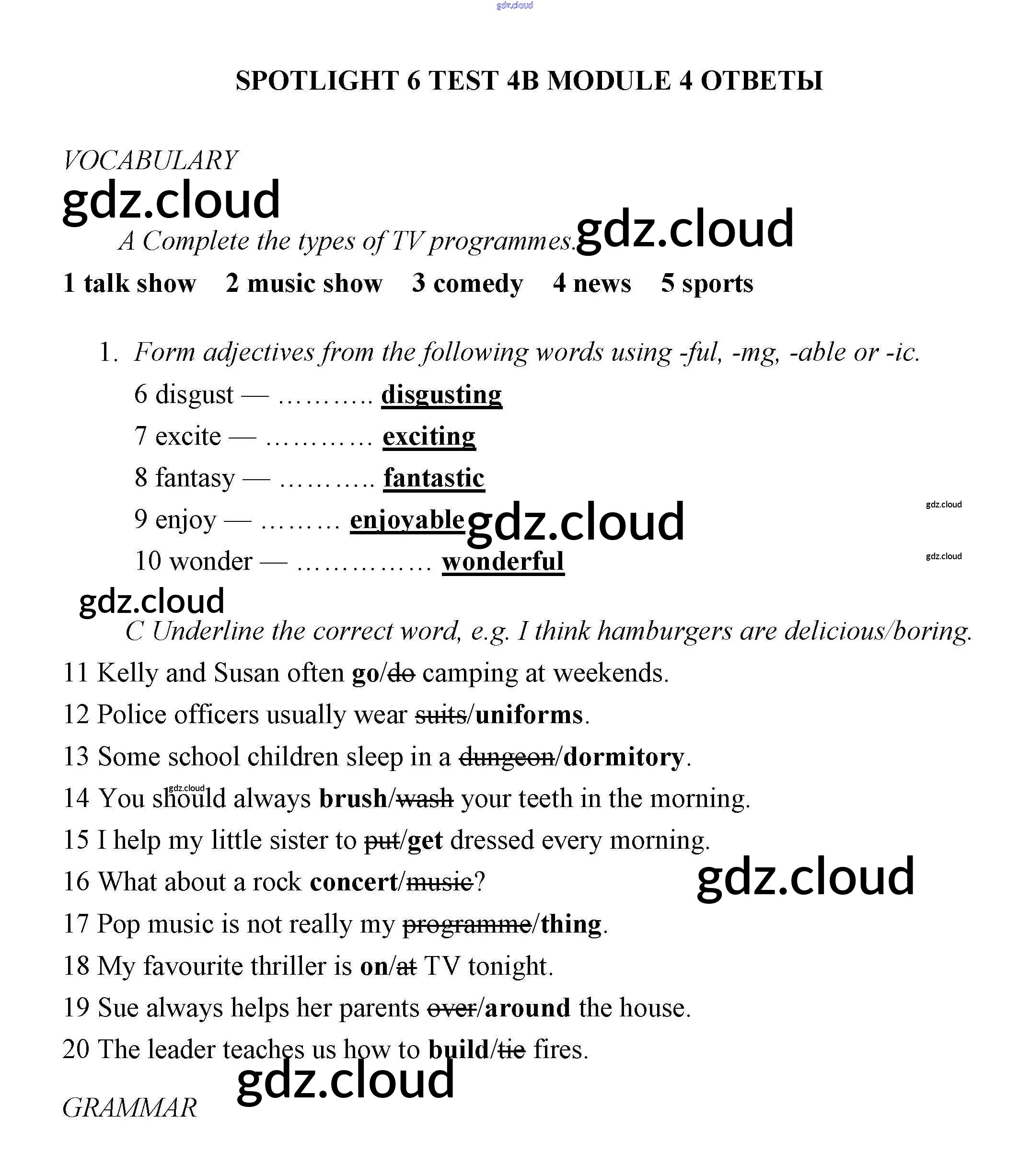 Ответы. Тесты по Английскому языку 6 класс Контрольные задания Ваулина Spotlight Просвещение