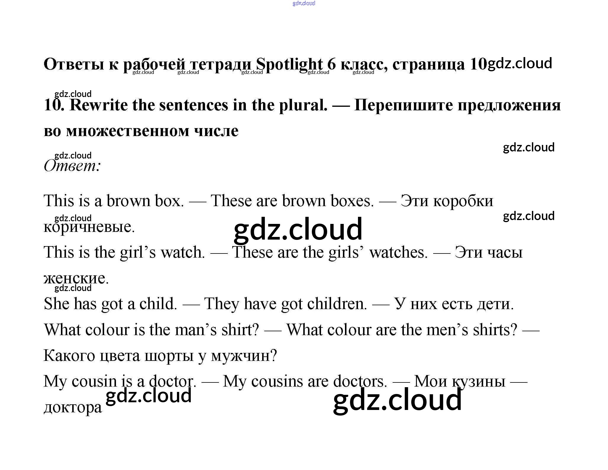 Ответ на задание 10 Рабочая тетрадь Английский язык  за 6 (шестой) класс Эванс, Дули, Подоляко, Ваулина Spotlight  2011
