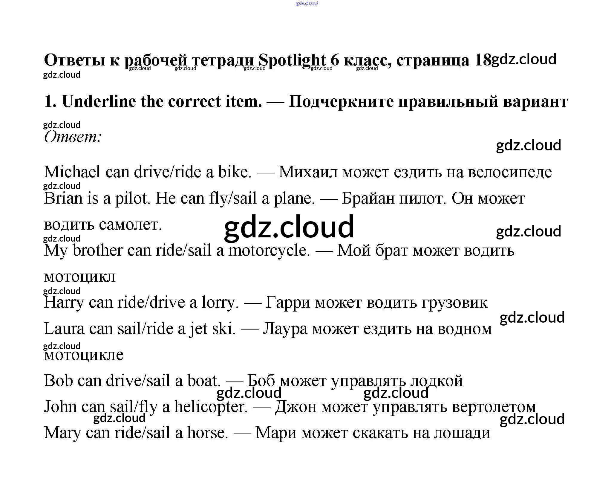 Ответ на задание 18 Рабочая тетрадь Английский язык  за 6 (шестой) класс Эванс, Дули, Подоляко, Ваулина Spotlight  2011