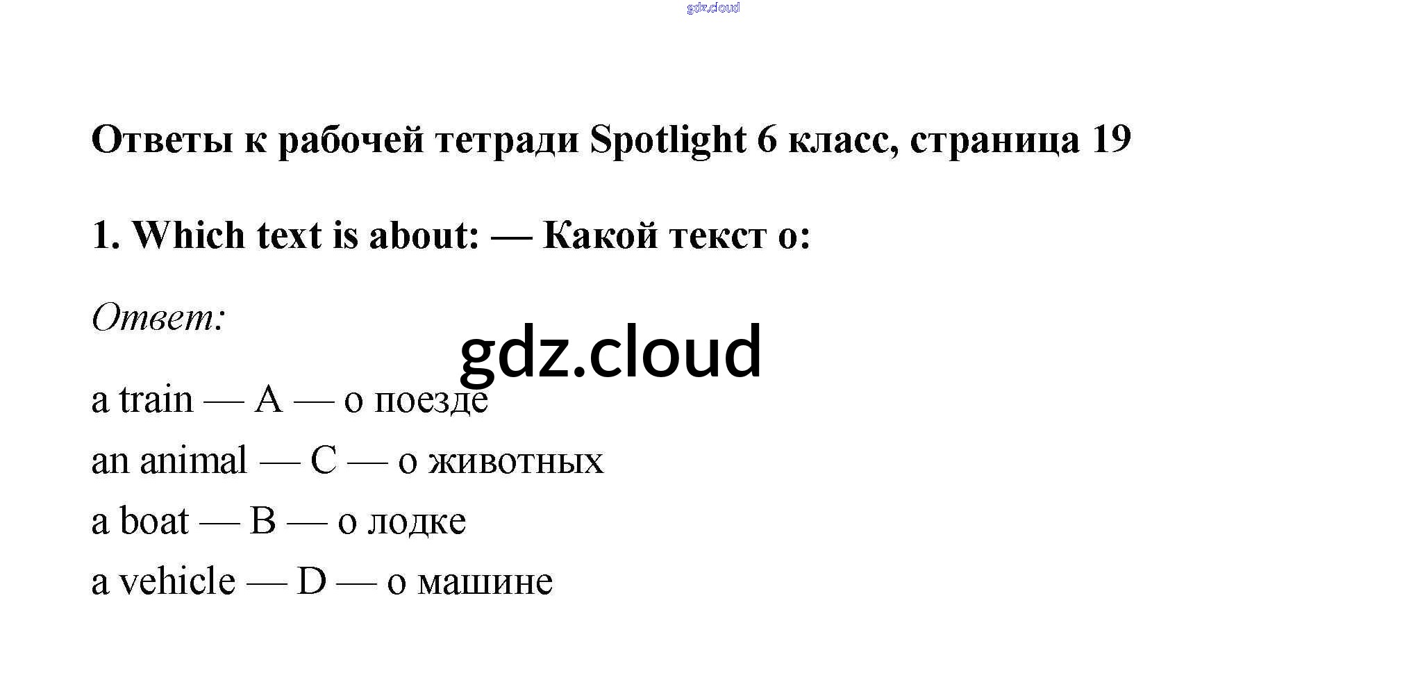 Ответ на задание 19 Рабочая тетрадь Английский язык  за 6 (шестой) класс Эванс, Дули, Подоляко, Ваулина Spotlight  2011