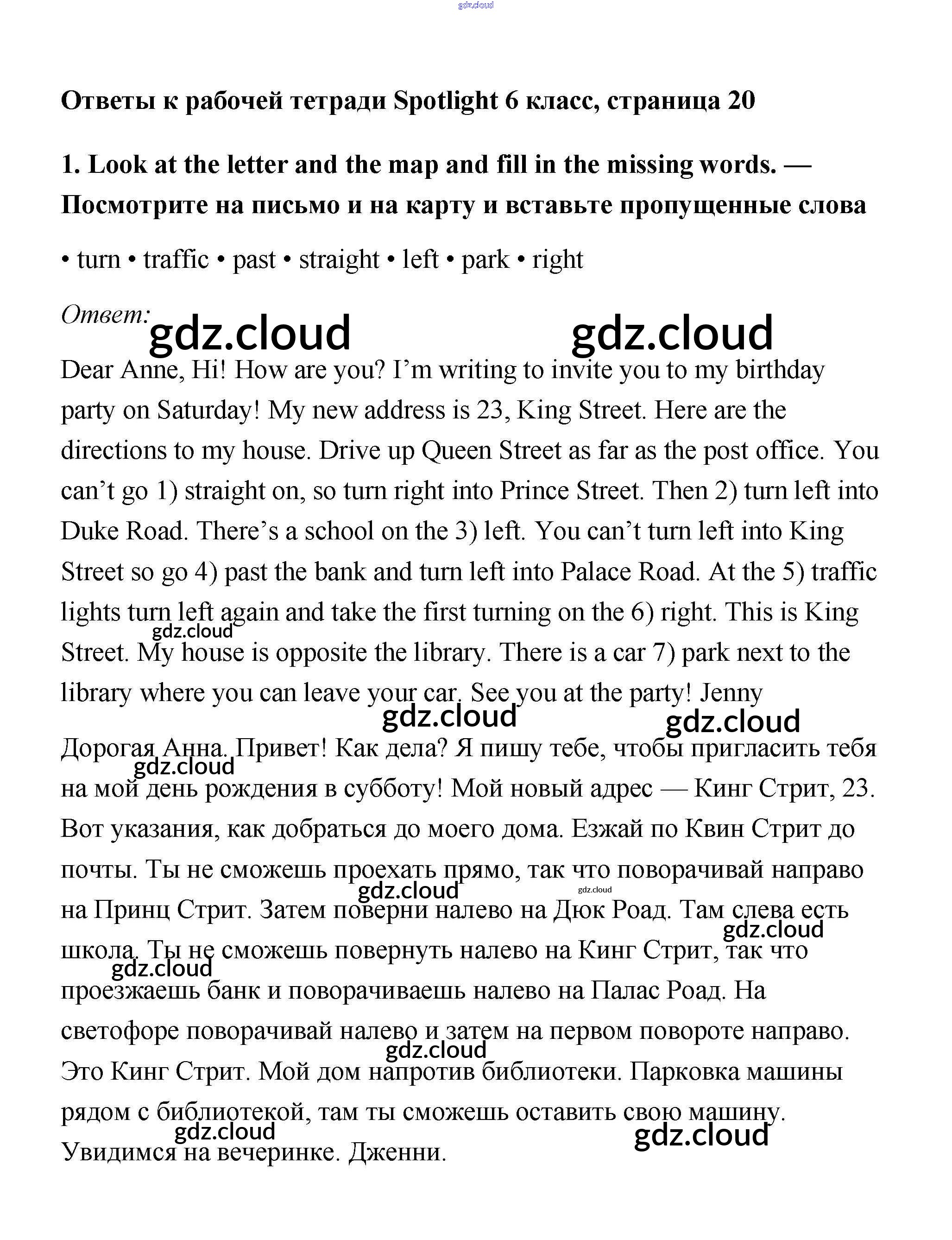 Ответ на задание 20 Рабочая тетрадь Английский язык  за 6 (шестой) класс Эванс, Дули, Подоляко, Ваулина Spotlight  2011