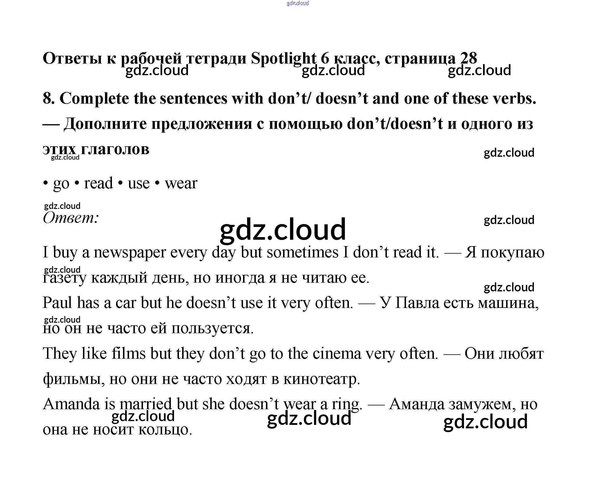 Ответ на задание 28 Рабочая тетрадь Английский язык  за 6 (шестой) класс Эванс, Дули, Подоляко, Ваулина Spotlight  2011
