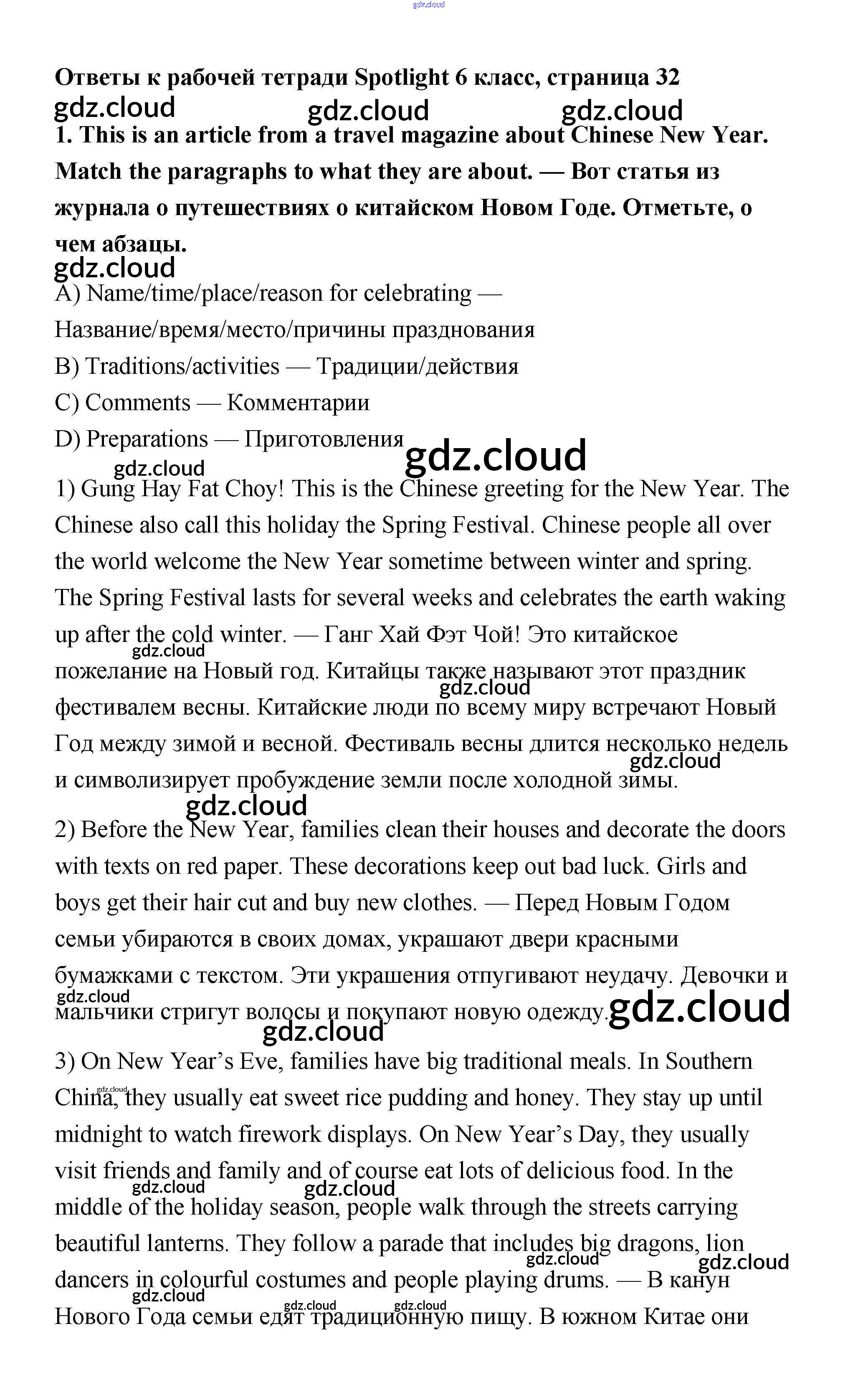Ответ на задание 32 Рабочая тетрадь Английский язык  за 6 (шестой) класс Эванс, Дули, Подоляко, Ваулина Spotlight  2011