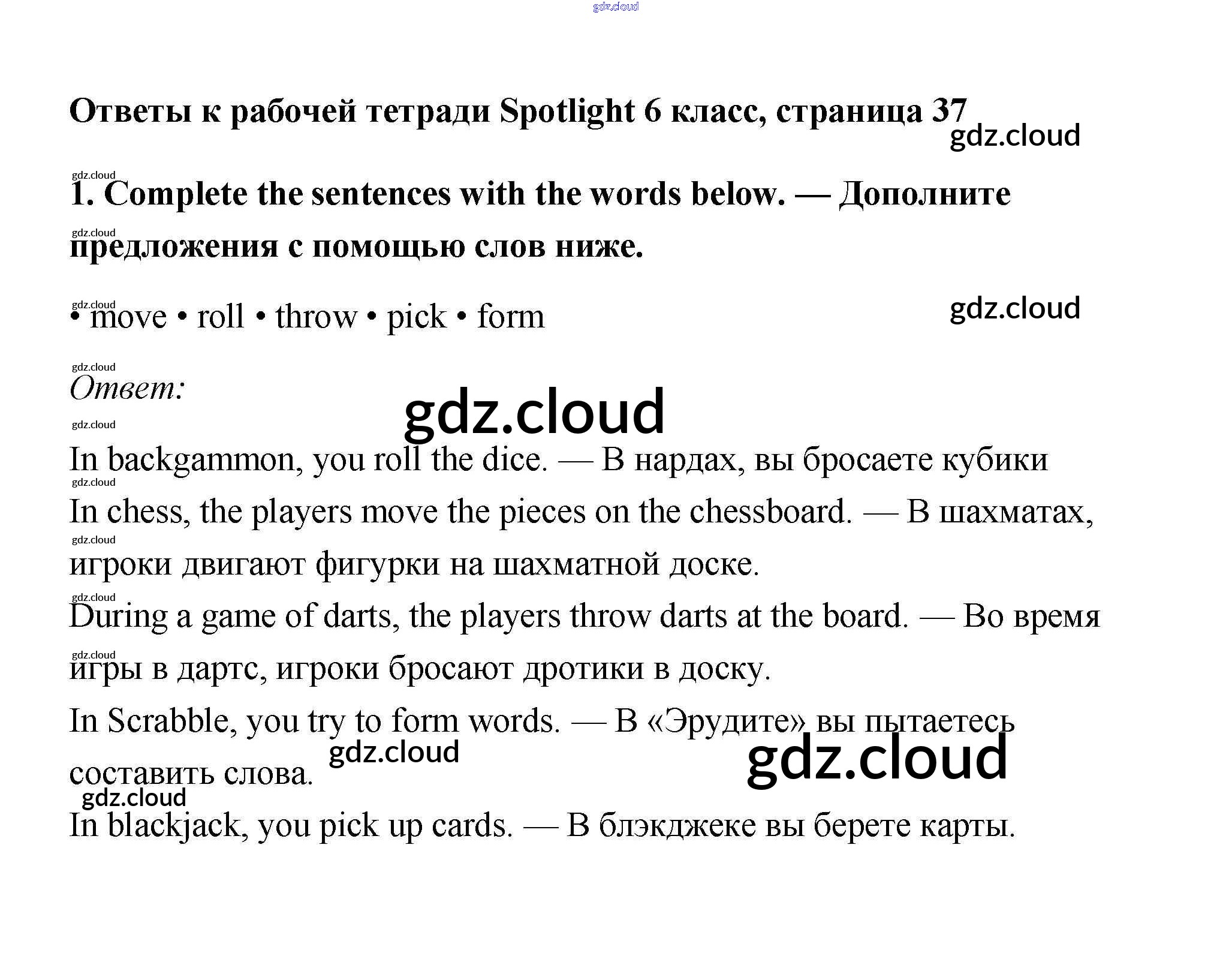 Ответ на задание 37 Рабочая тетрадь Английский язык  за 6 (шестой) класс Эванс, Дули, Подоляко, Ваулина Spotlight  2011
