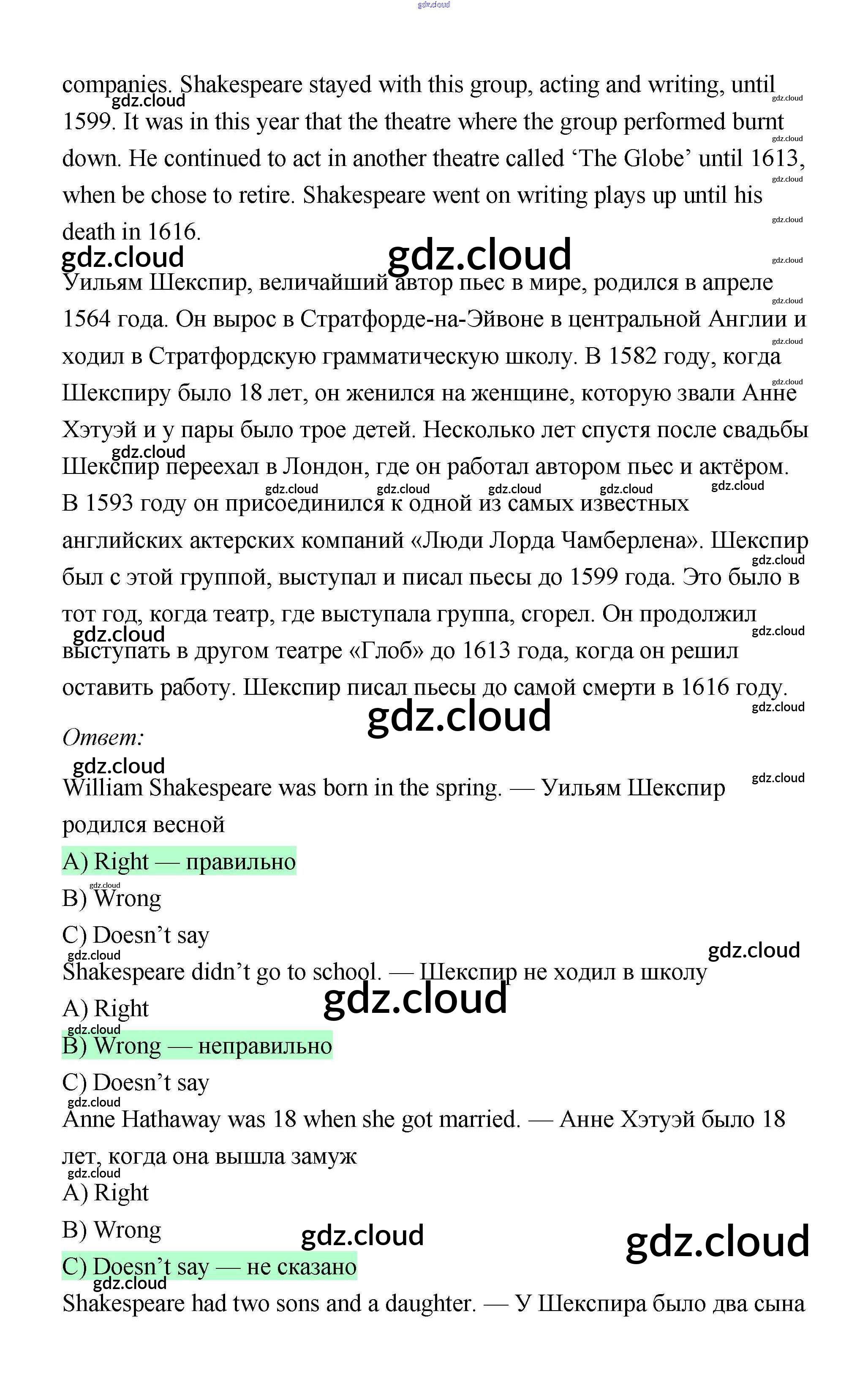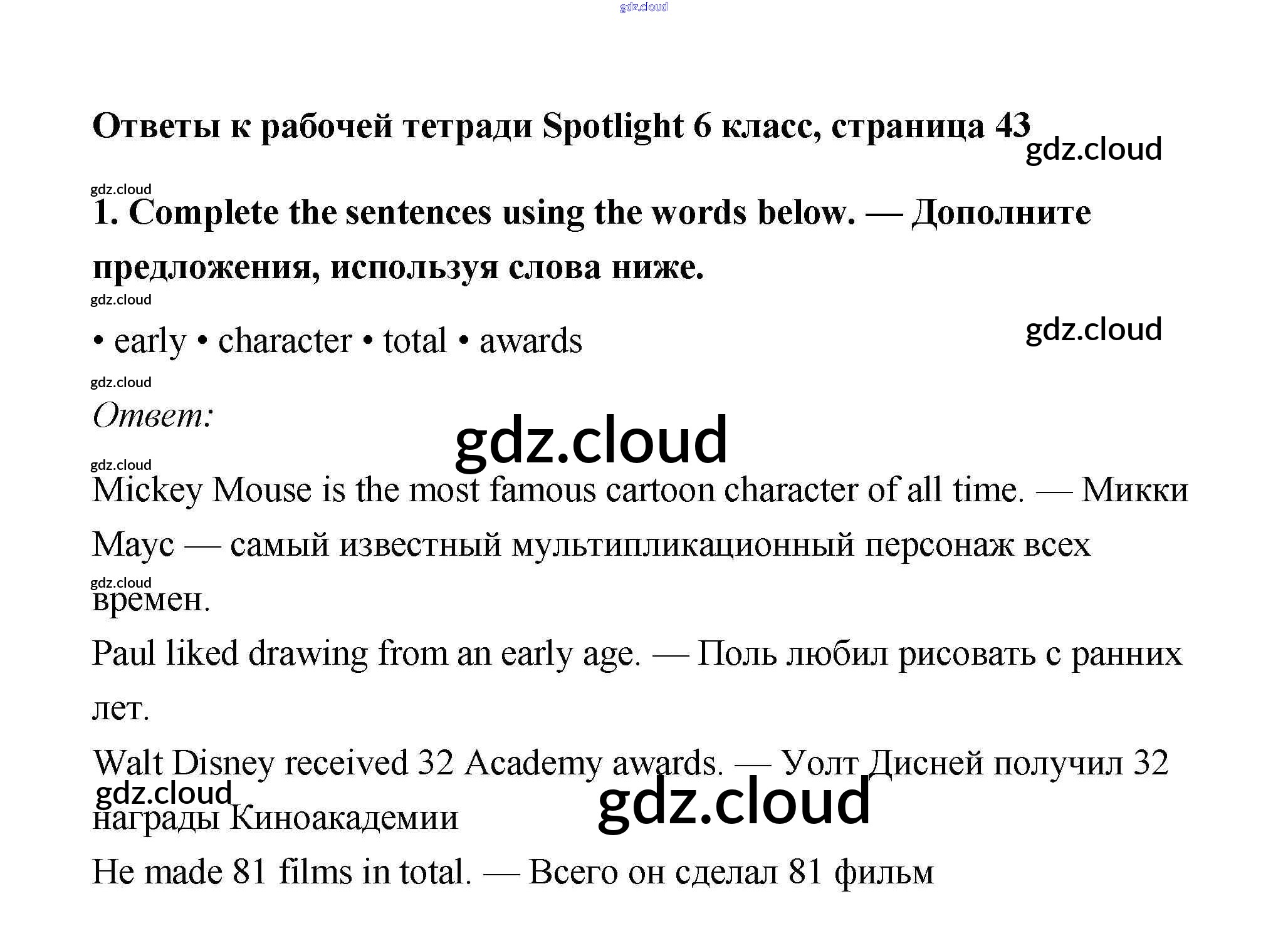 Ответ на задание 43 Рабочая тетрадь Английский язык  за 6 (шестой) класс Эванс, Дули, Подоляко, Ваулина Spotlight  2011
