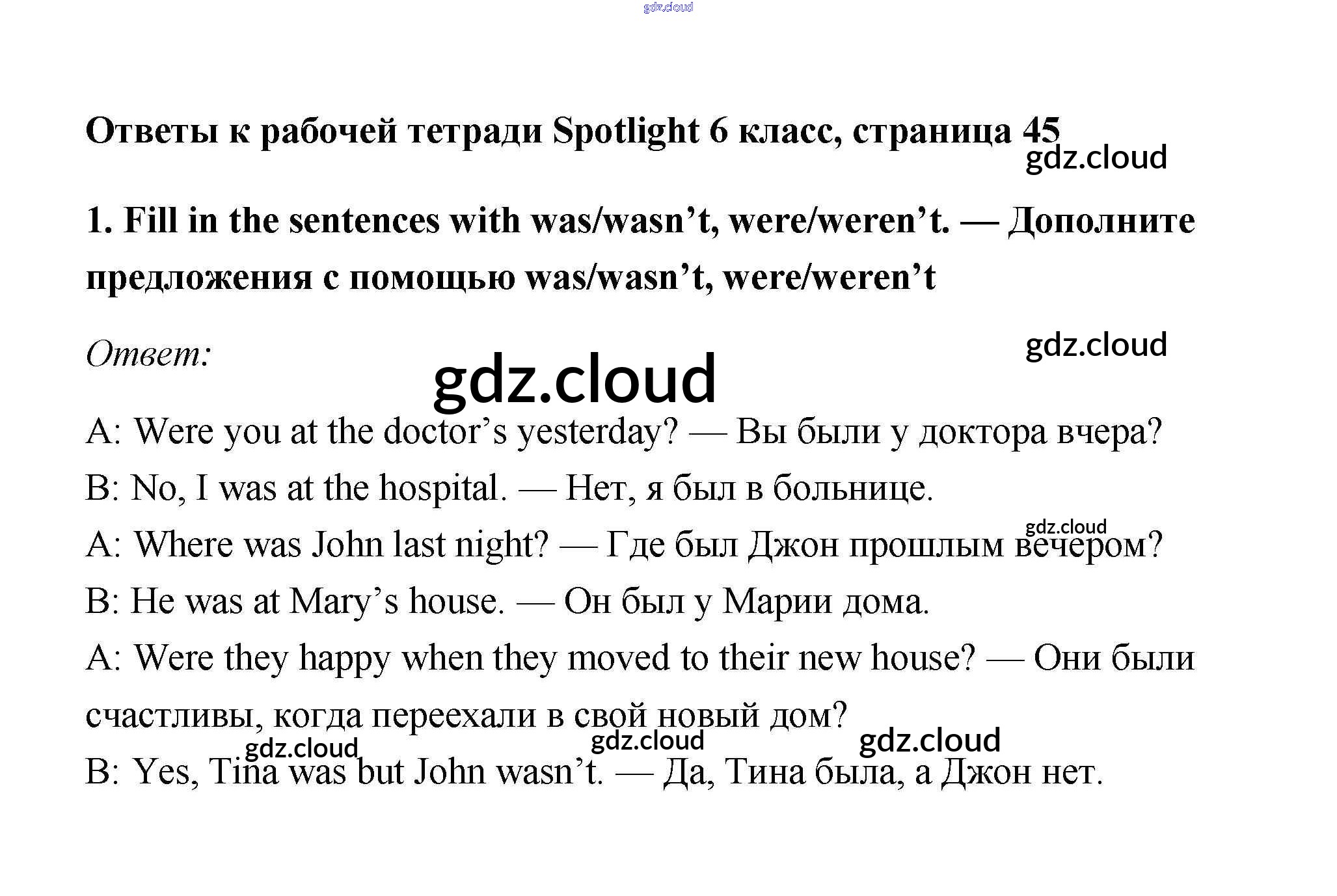 Ответ на задание 45 Рабочая тетрадь Английский язык  за 6 (шестой) класс Эванс, Дули, Подоляко, Ваулина Spotlight  2011