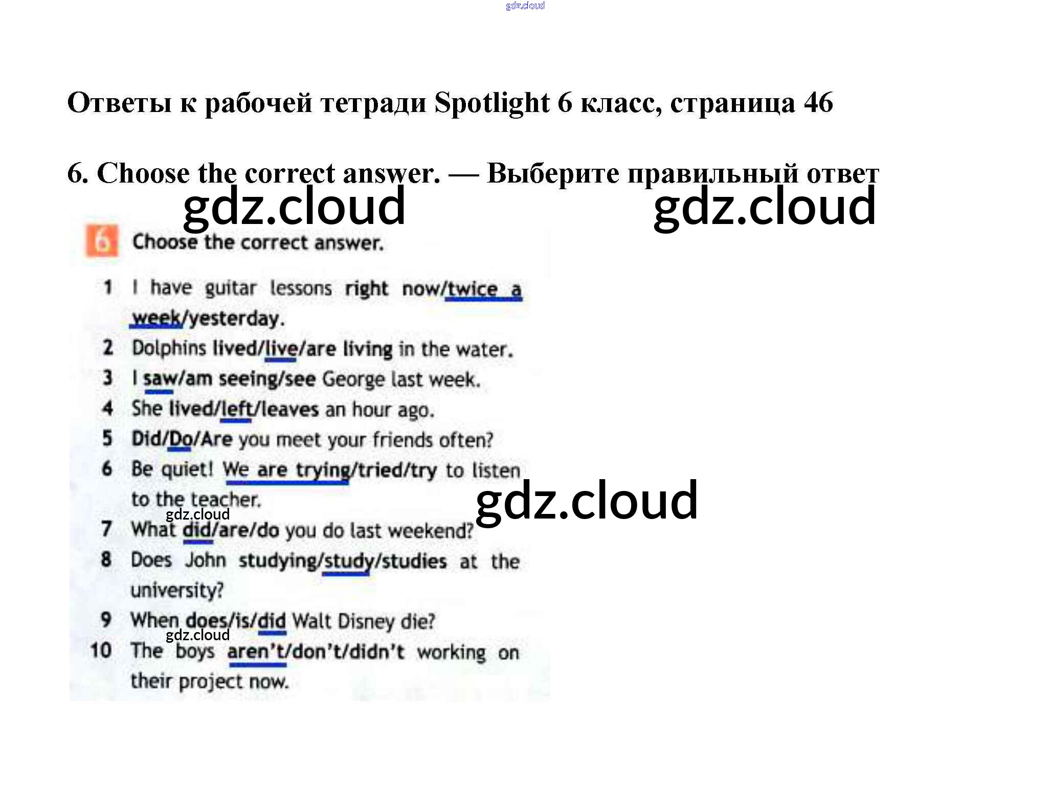 Ответ на задание 46 Рабочая тетрадь Английский язык  за 6 (шестой) класс Эванс, Дули, Подоляко, Ваулина Spotlight  2011