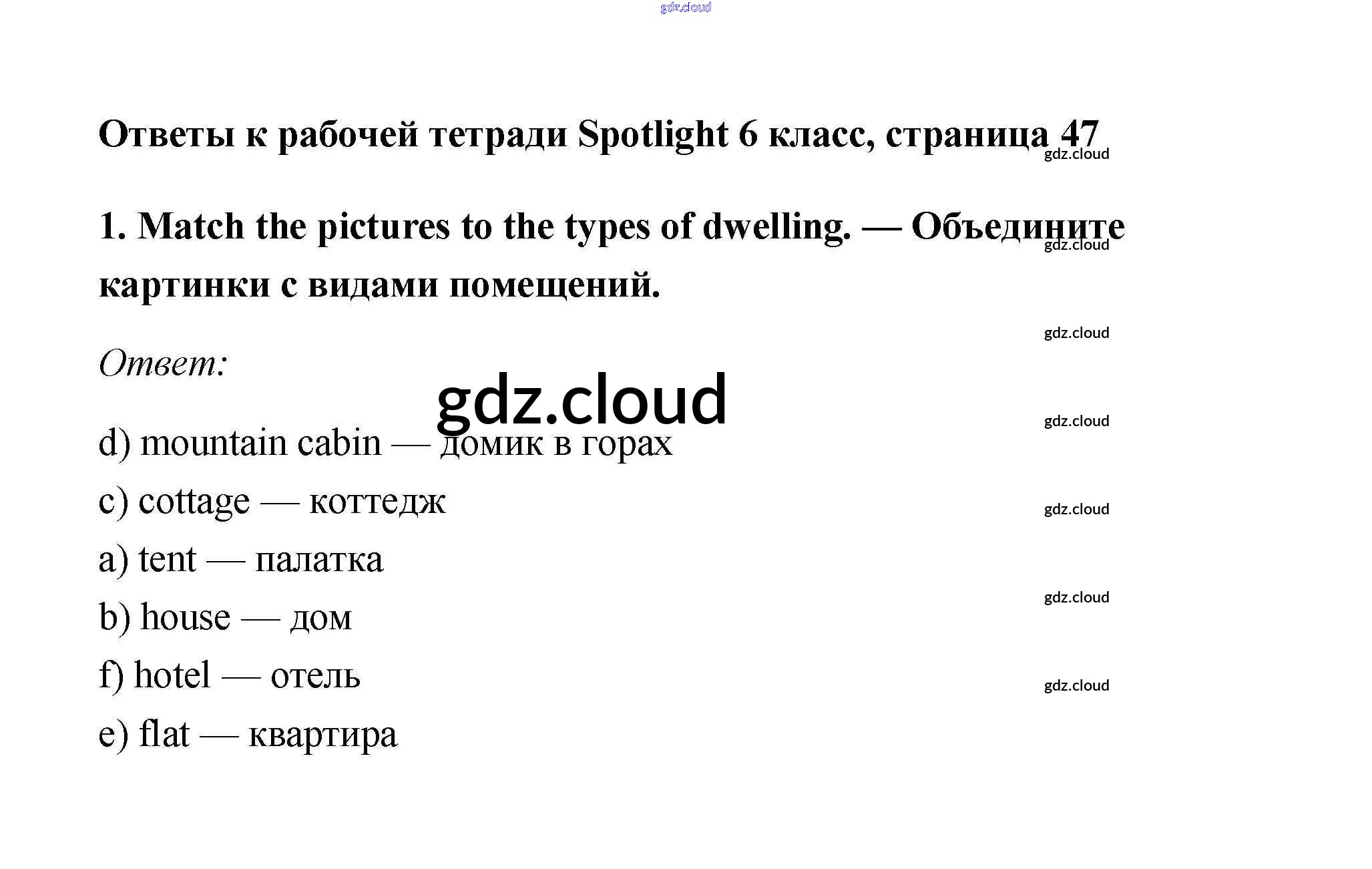 Ответ на задание 47 Рабочая тетрадь Английский язык  за 6 (шестой) класс Эванс, Дули, Подоляко, Ваулина Spotlight  2011