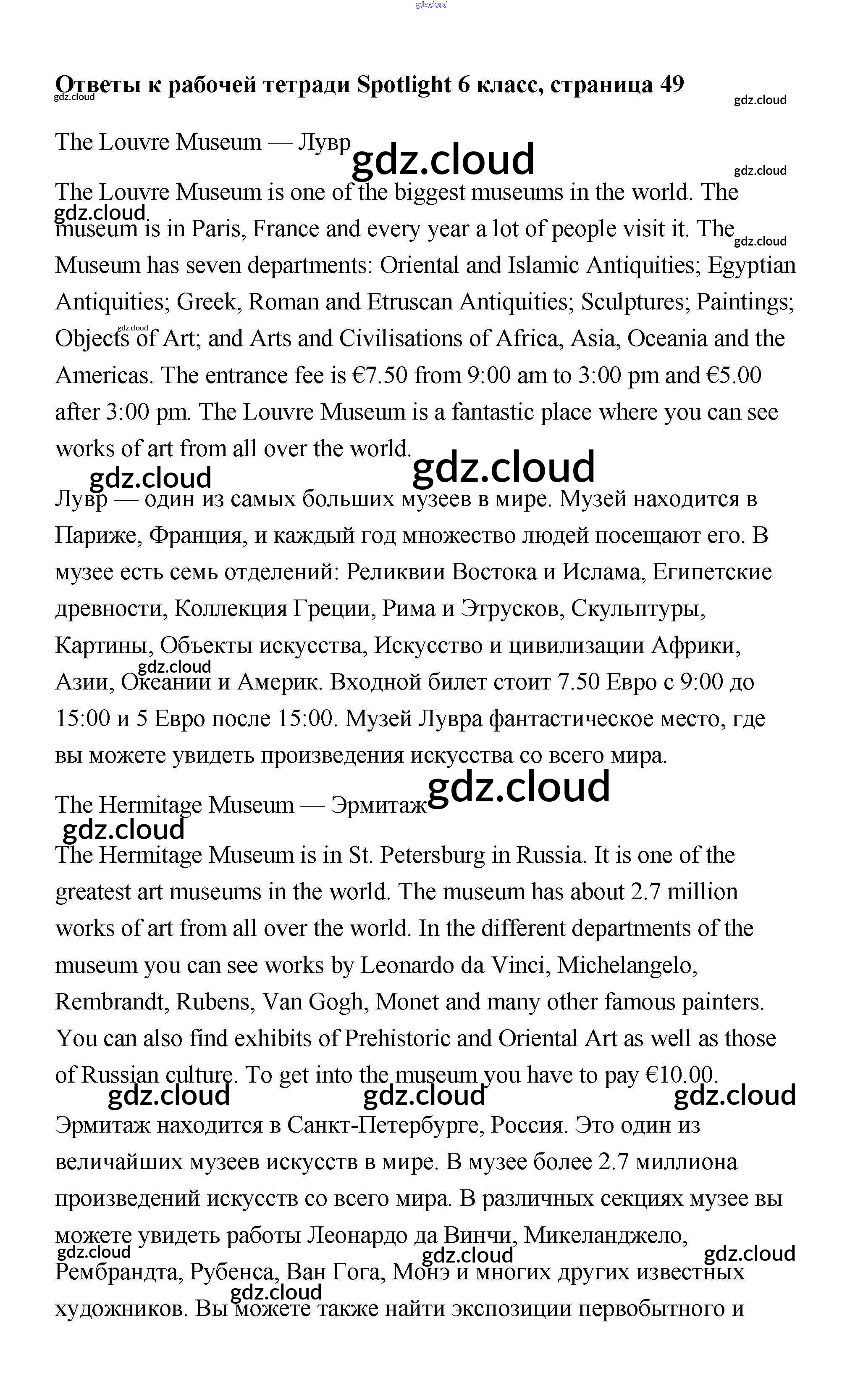 Ответ на задание 49 Рабочая тетрадь Английский язык  за 6 (шестой) класс Эванс, Дули, Подоляко, Ваулина Spotlight  2011