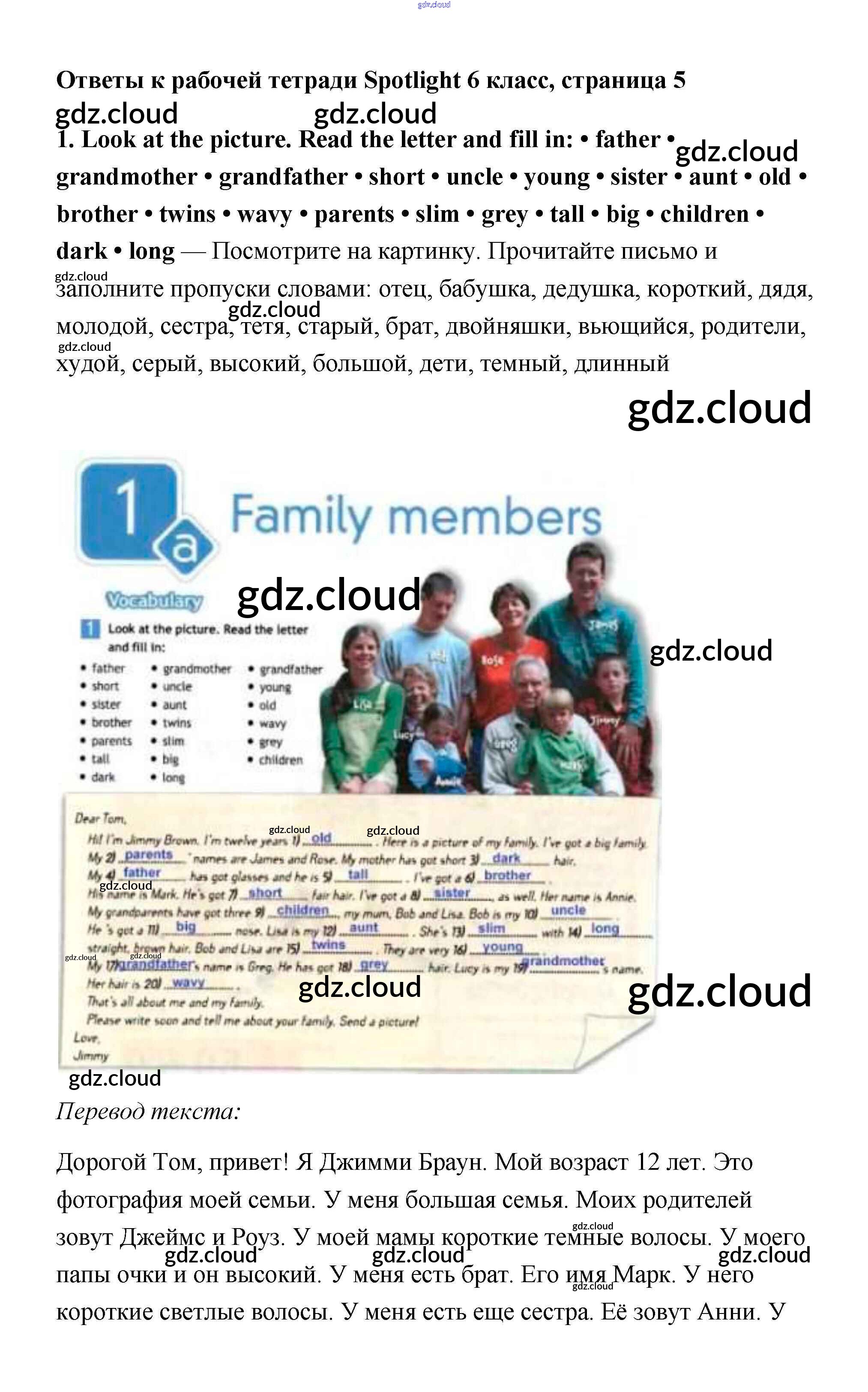 Ответ на задание 5 Рабочая тетрадь Английский язык  за 6 (шестой) класс Эванс, Дули, Подоляко, Ваулина Spotlight  2011