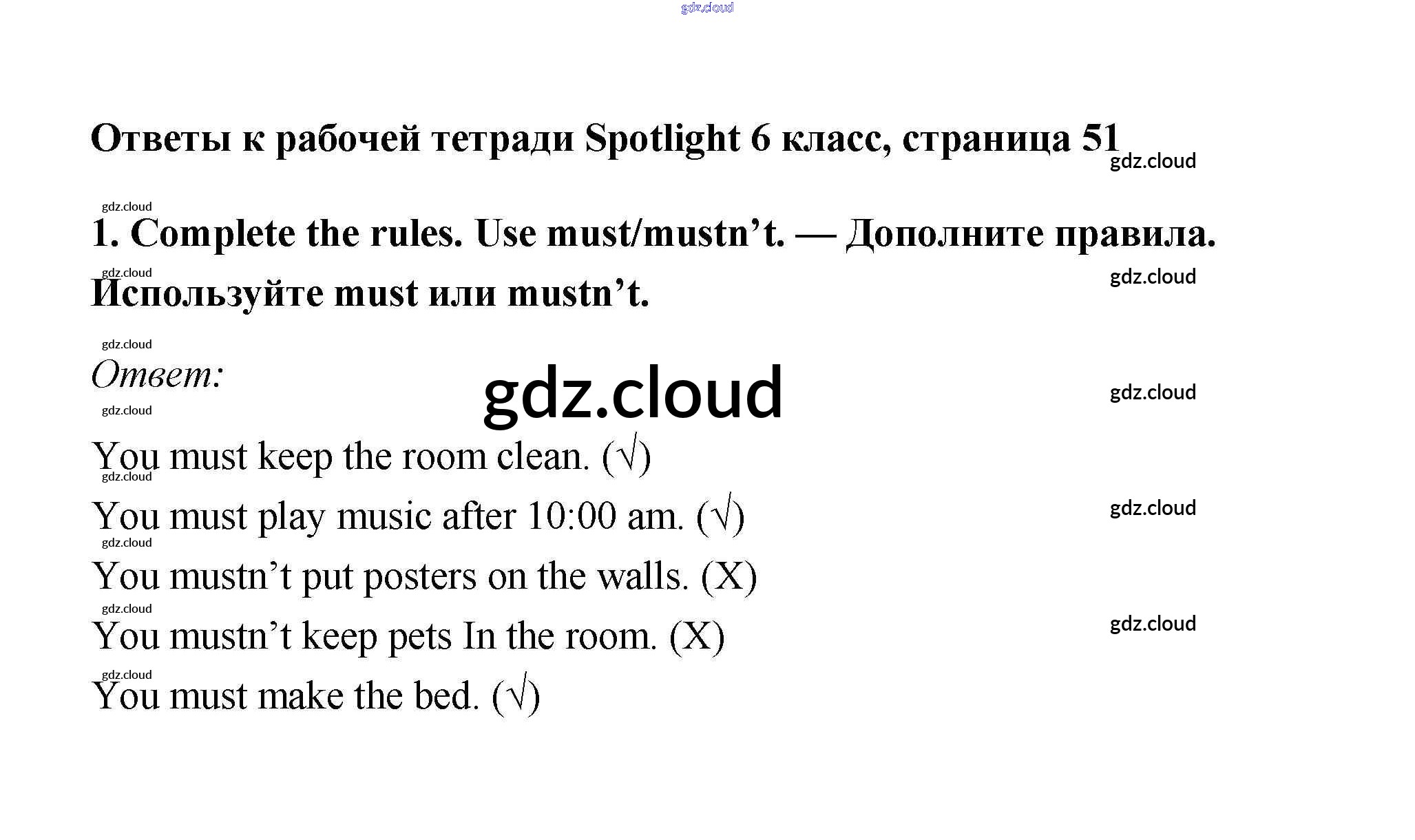 Ответ на задание 51 Рабочая тетрадь Английский язык  за 6 (шестой) класс Эванс, Дули, Подоляко, Ваулина Spotlight  2011
