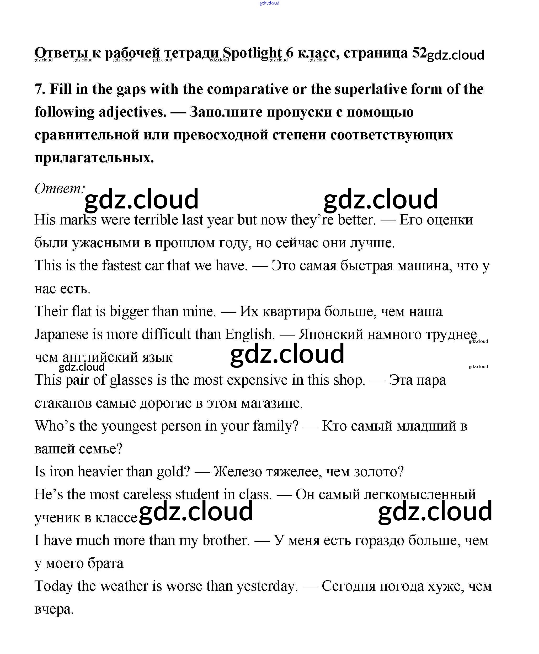 Ответ на задание 52 Рабочая тетрадь Английский язык  за 6 (шестой) класс Эванс, Дули, Подоляко, Ваулина Spotlight  2011