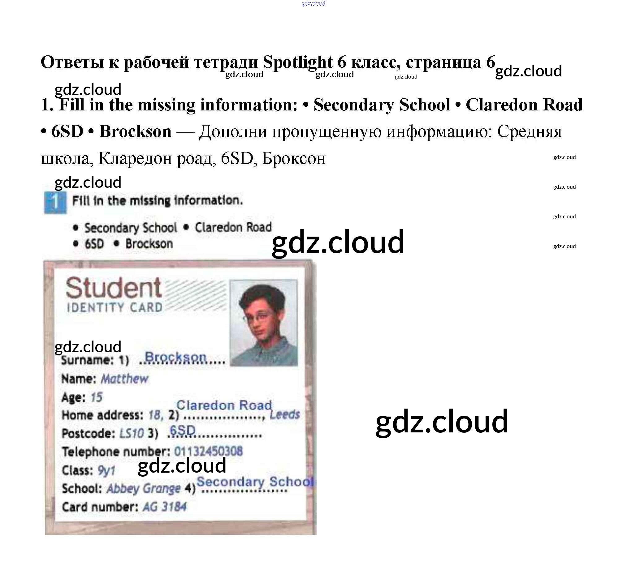 Ответ на задание 6 Рабочая тетрадь Английский язык  за 6 (шестой) класс Эванс, Дули, Подоляко, Ваулина Spotlight  2011