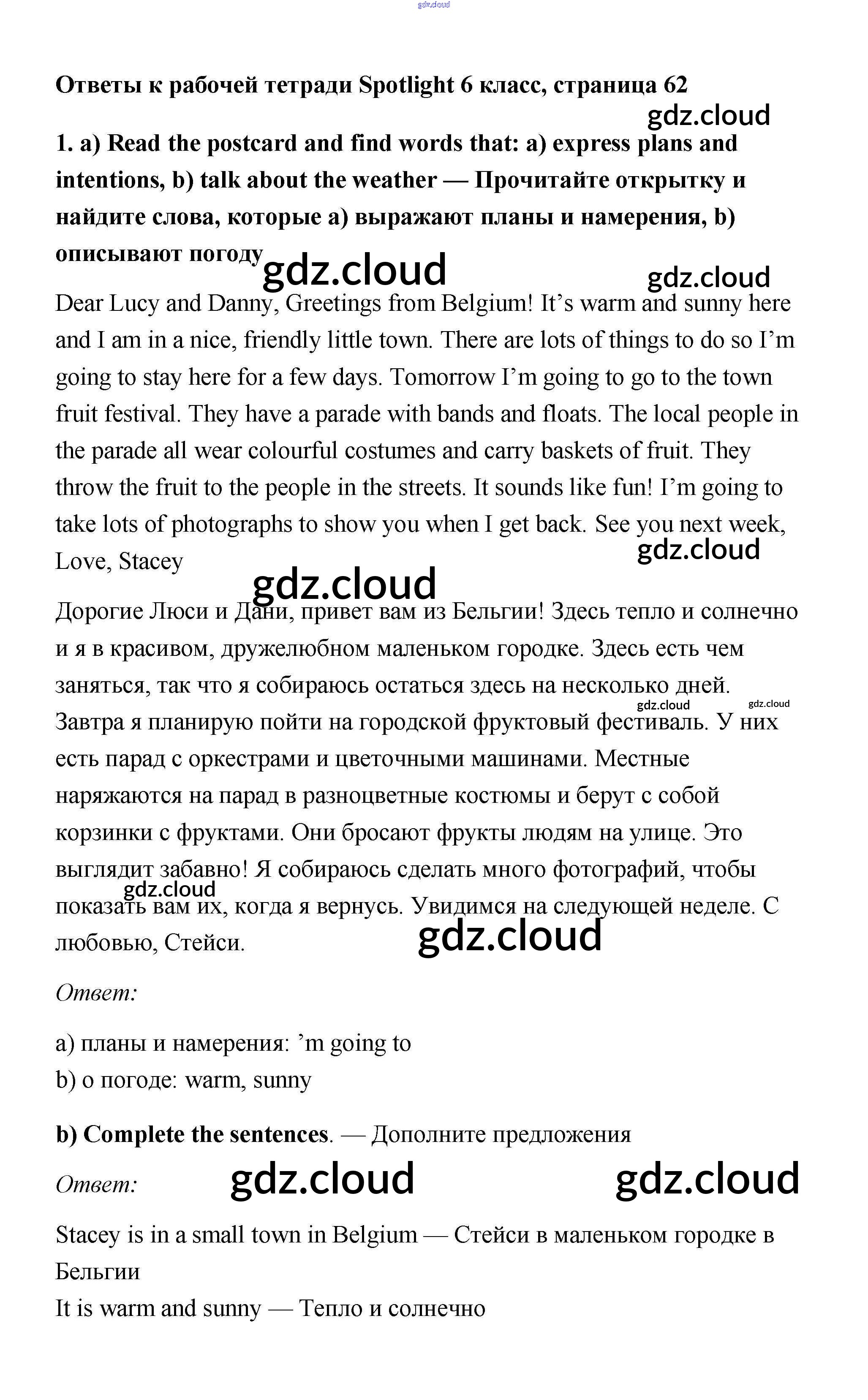 Ответ на задание 62 Рабочая тетрадь Английский язык  за 6 (шестой) класс Эванс, Дули, Подоляко, Ваулина Spotlight  2011