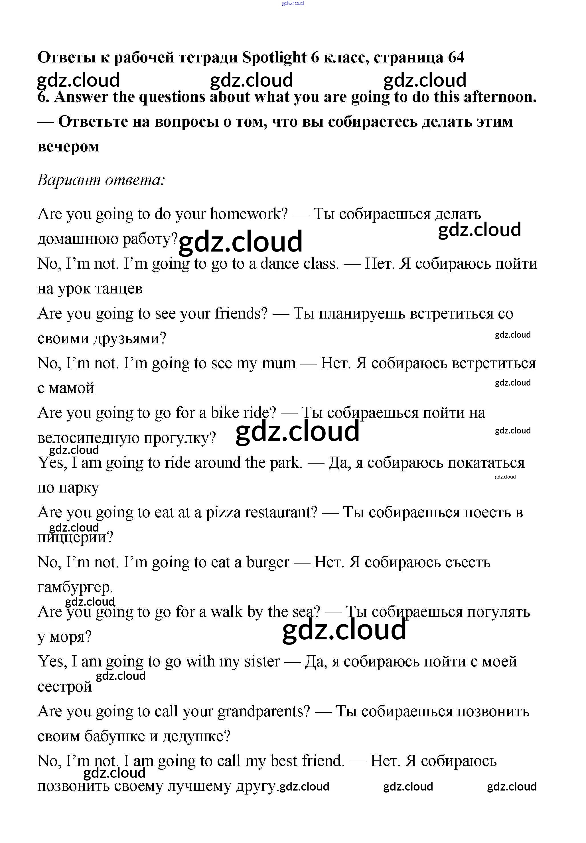 Ответы к страницам  по Английскому языку 6 класс Рабочая тетрадь Эванс Spotlight   Просвещение
