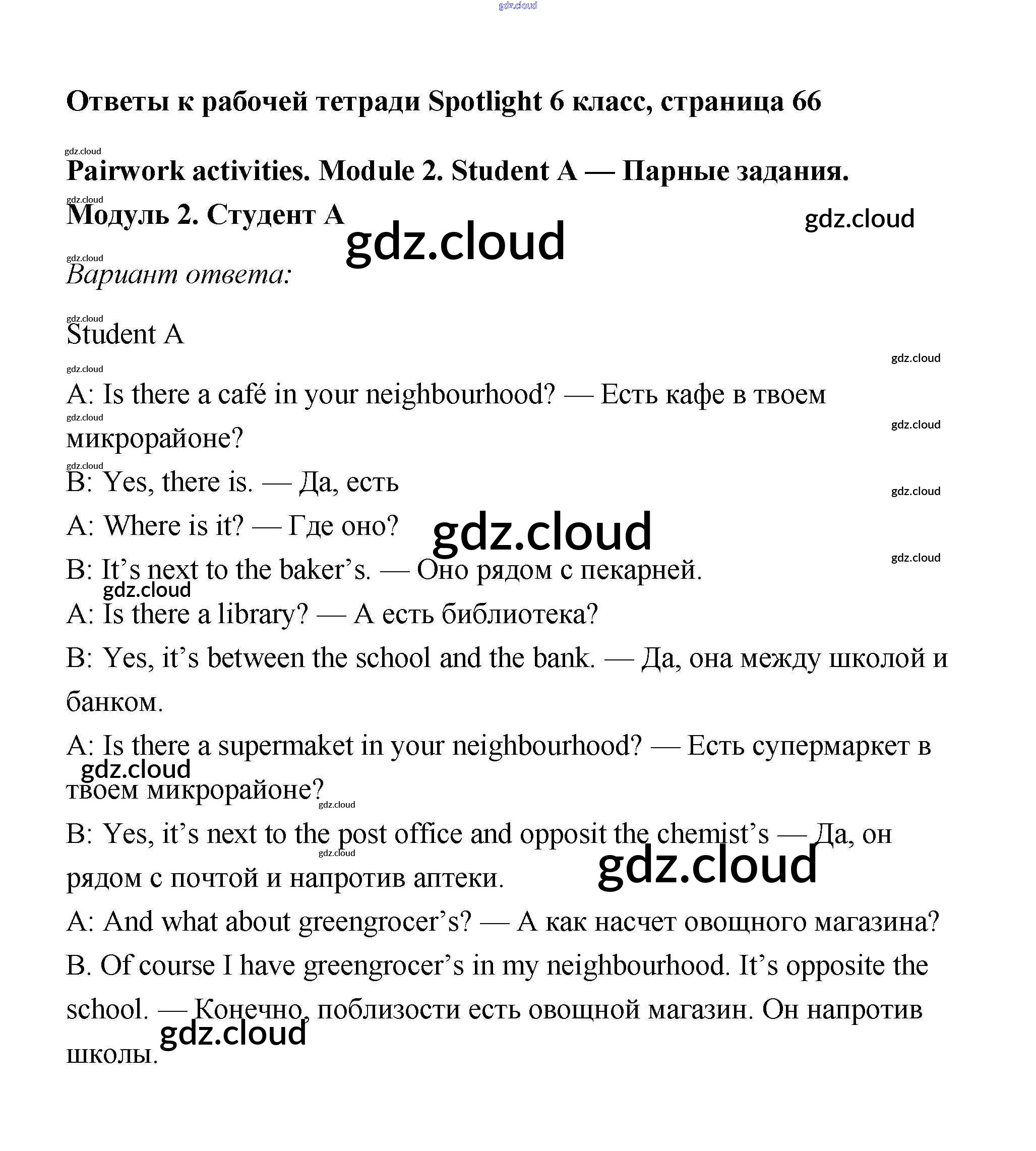 Ответ на задание 66 Рабочая тетрадь Английский язык  за 6 (шестой) класс Эванс, Дули, Подоляко, Ваулина Spotlight  2011