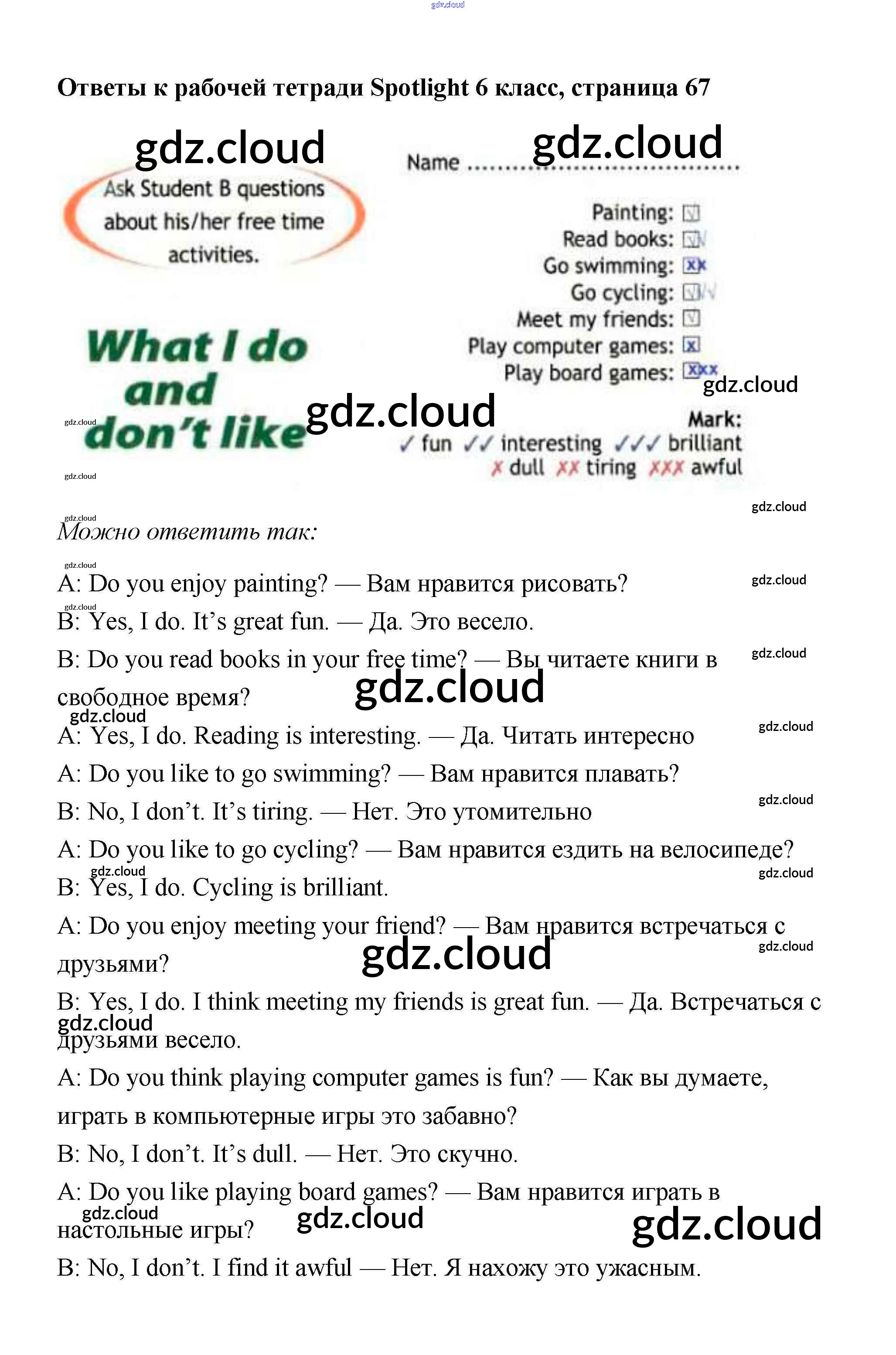 Ответ на задание 67 Рабочая тетрадь Английский язык за 6 (шестой) класс Эванс, Дули, Подоляко, Ваулина Spotlight 2011 онлайн и без номера телефона.