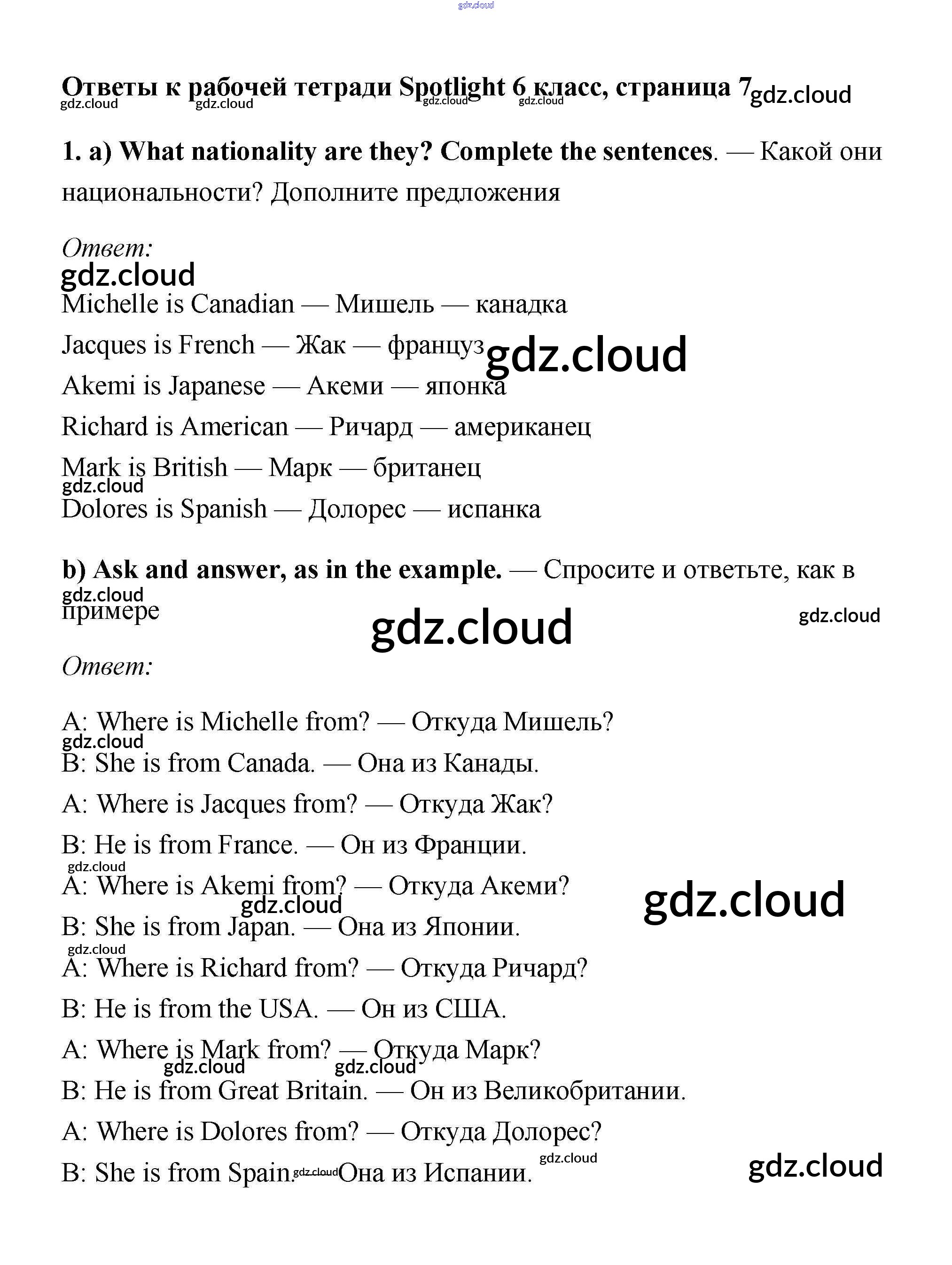 Ответ на задание 7 Рабочая тетрадь Английский язык  за 6 (шестой) класс Эванс, Дули, Подоляко, Ваулина Spotlight  2011