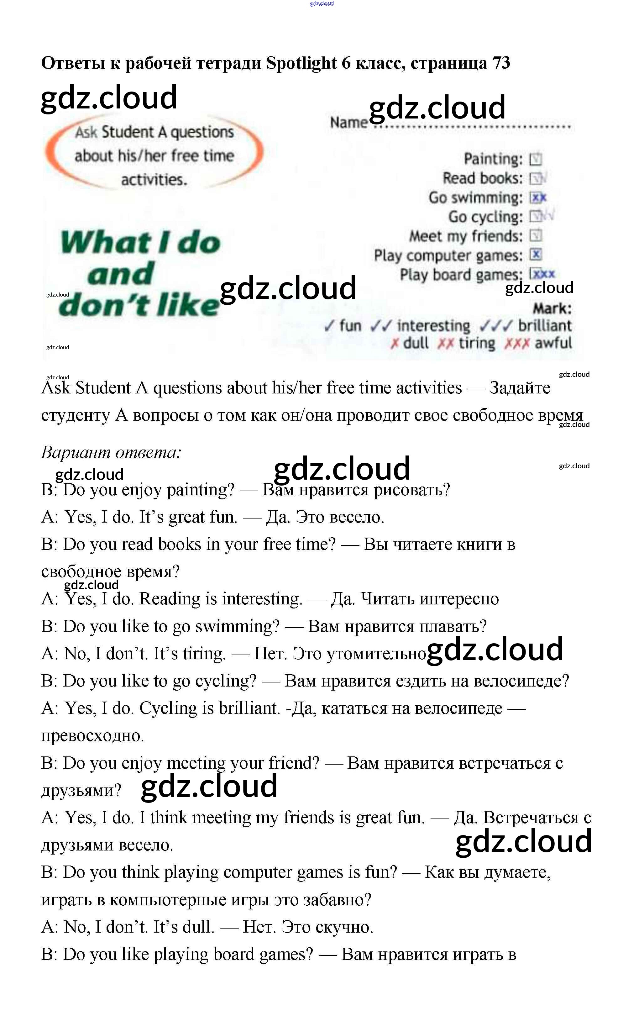 Ответ на задание 73 Рабочая тетрадь Английский язык за 6 (шестой) класс Эванс, Дули, Подоляко, Ваулина Spotlight 2011 онлайн и без номера телефона.