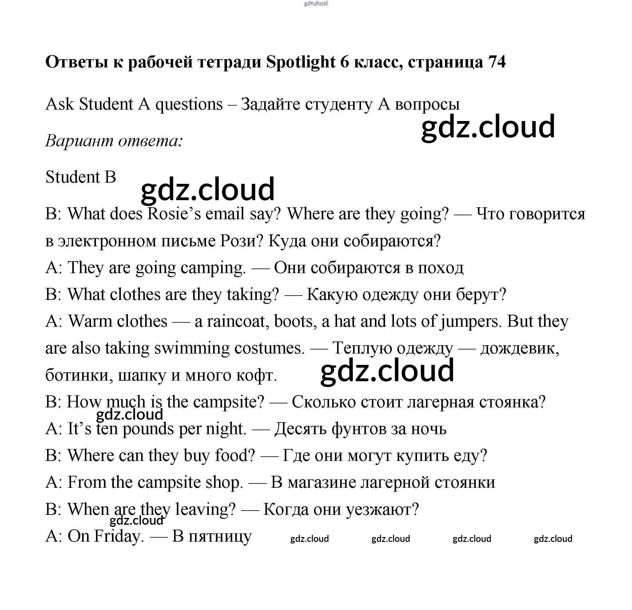 Ответ на задание 74 Рабочая тетрадь Английский язык  за 6 (шестой) класс Эванс, Дули, Подоляко, Ваулина Spotlight  2011