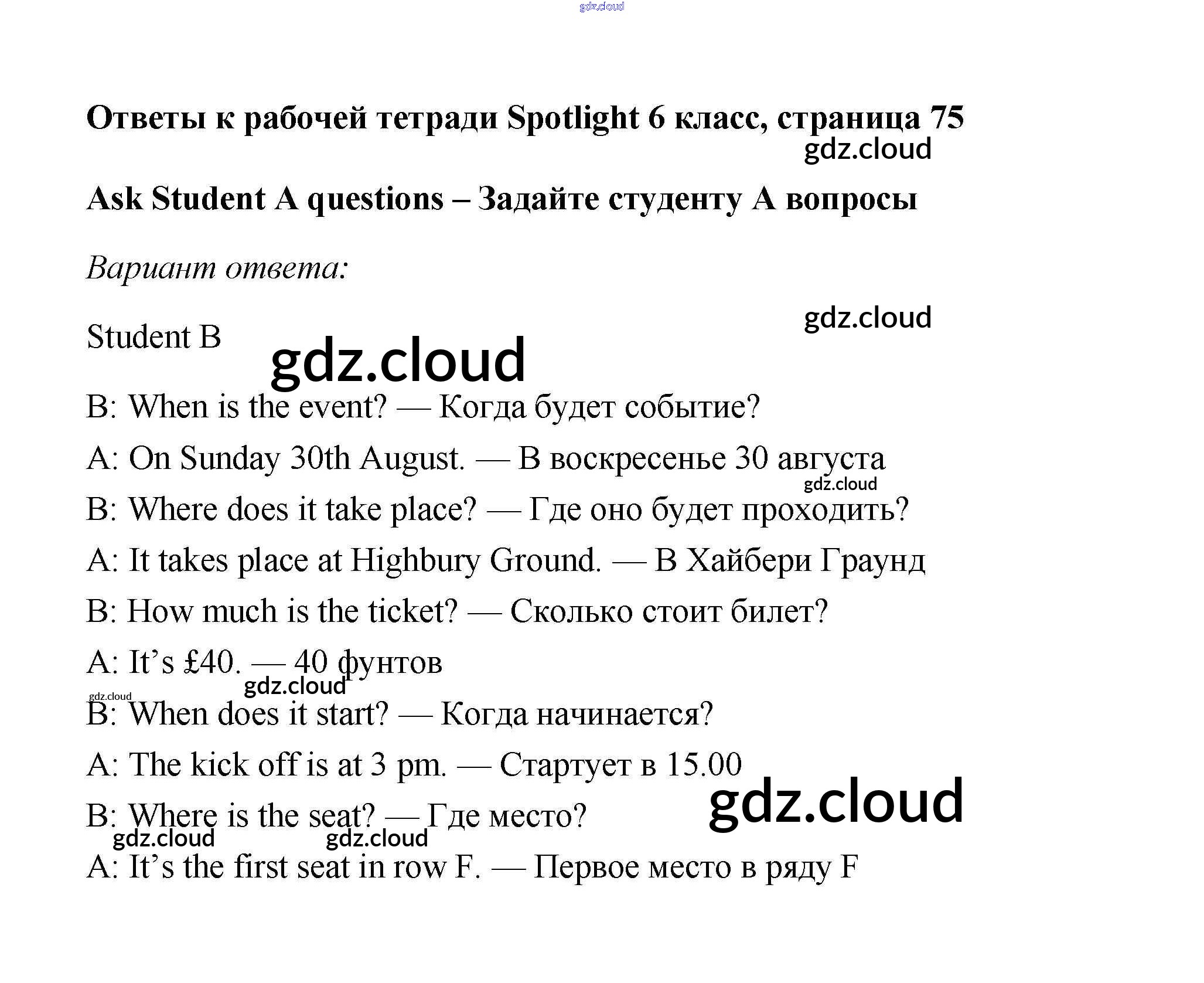 Ответ на задание 75 Рабочая тетрадь Английский язык  за 6 (шестой) класс Эванс, Дули, Подоляко, Ваулина Spotlight  2011