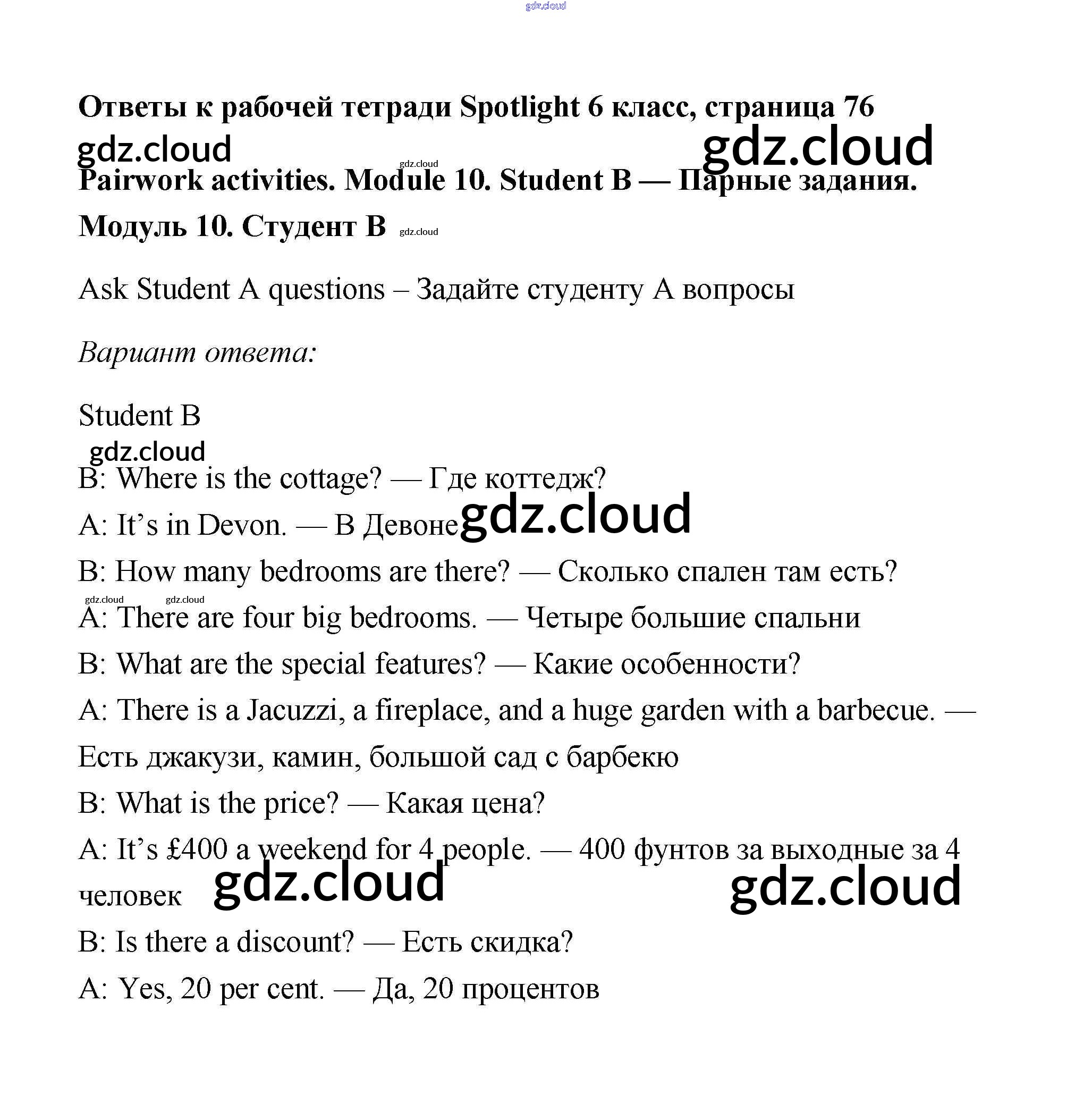 Ответ на задание 76 Рабочая тетрадь Английский язык  за 6 (шестой) класс Эванс, Дули, Подоляко, Ваулина Spotlight  2011