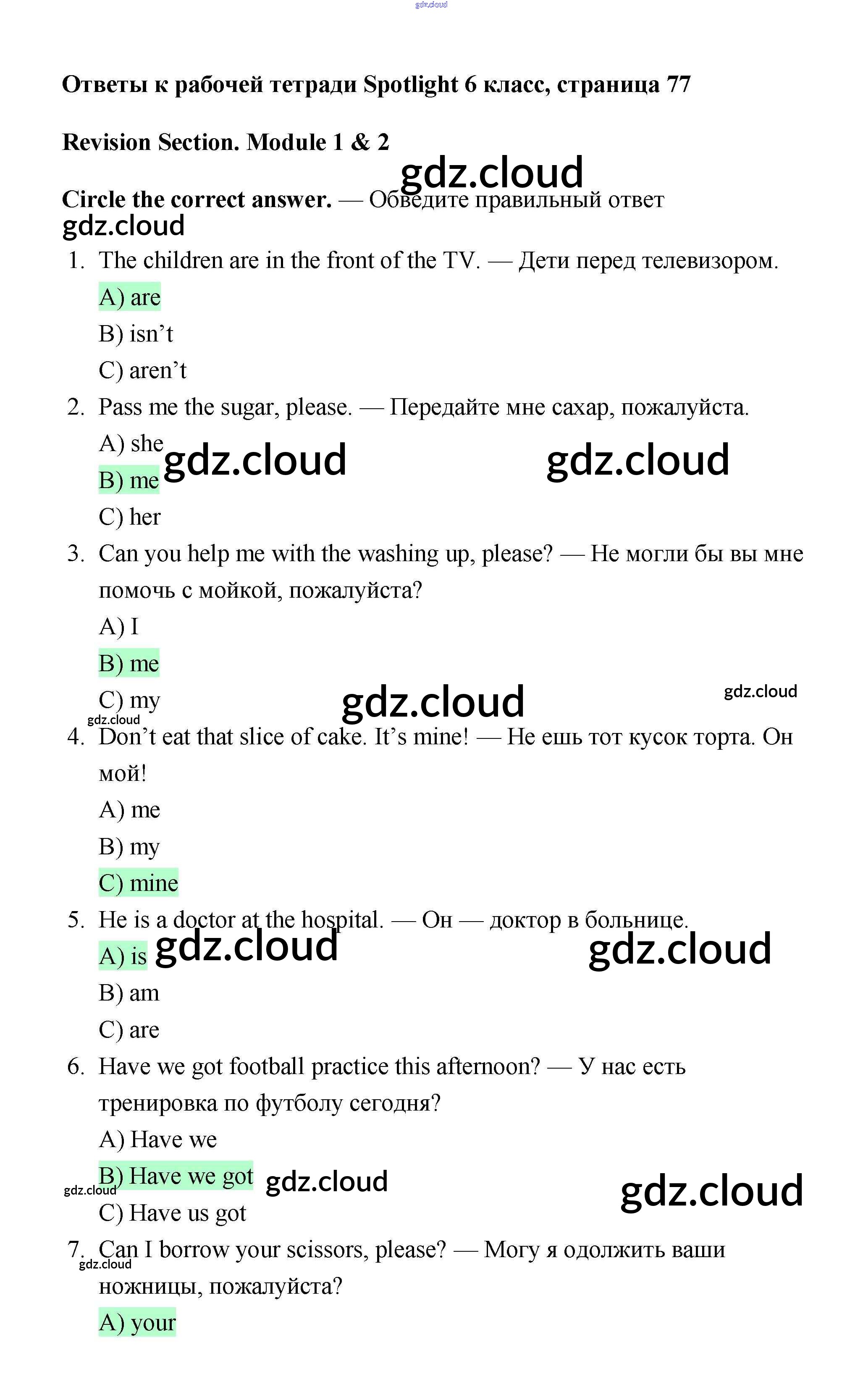 Ответ на задание 77 Рабочая тетрадь Английский язык  за 6 (шестой) класс Эванс, Дули, Подоляко, Ваулина Spotlight  2011