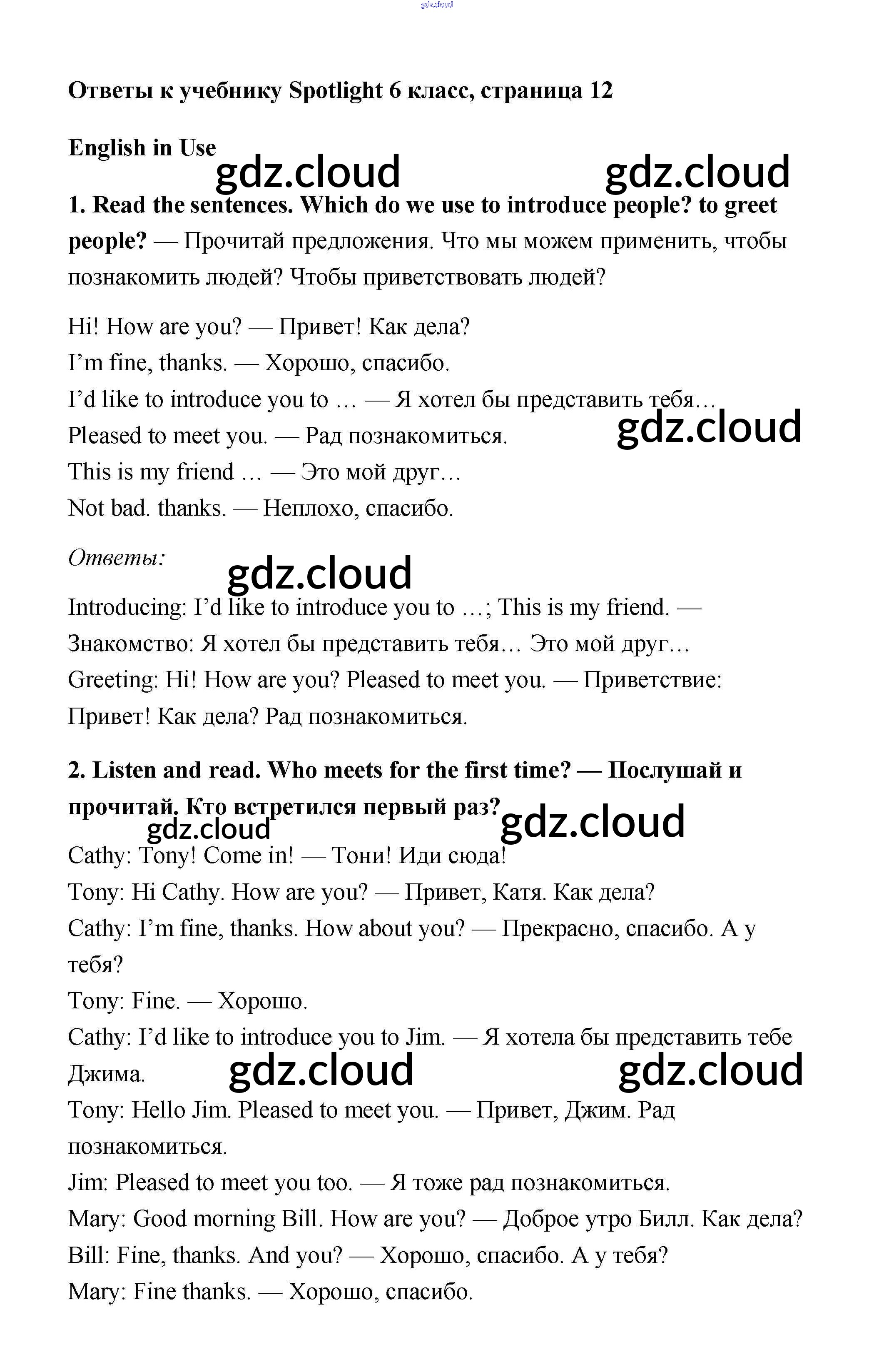 Ответ на задание 12 Учебник Английский язык за 6 (шестой) класс Ваулина, Дули, Эванс, Подоляко Spotlight 2017