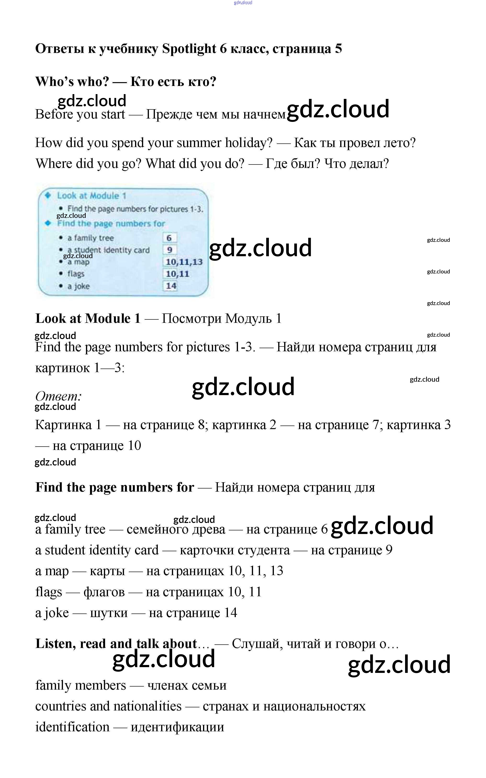 Ответы к  Module 1. Who's who? Страницы  по Английскому языку 6 класс Учебник Ваулина Spotlight   Просвещение