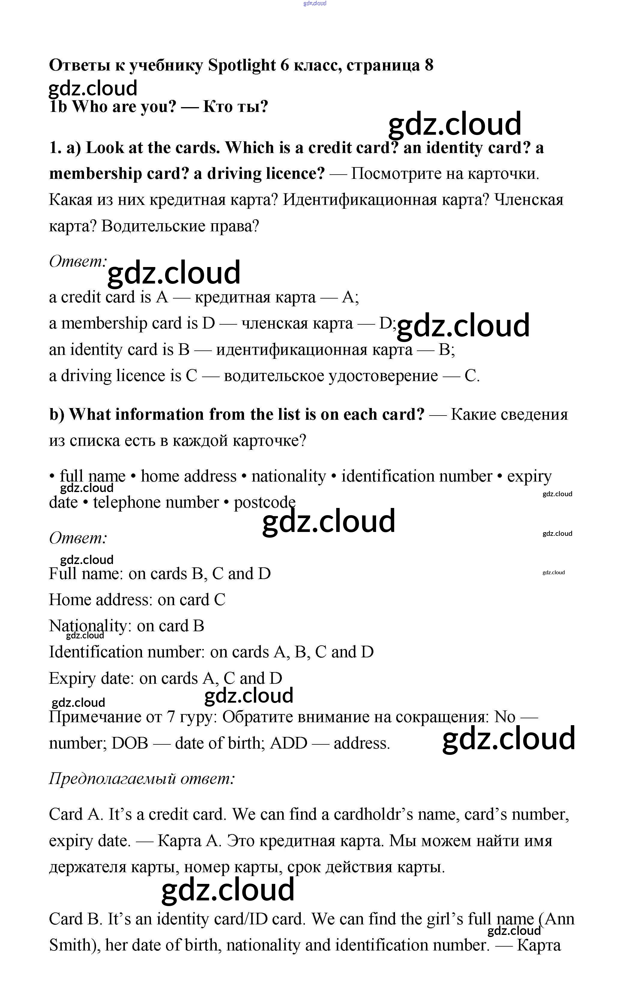 Ответ на задание 8 Учебник Английский язык  за 6 (шестой) класс Ваулина, Дули, Эванс, Подоляко Spotlight  2017