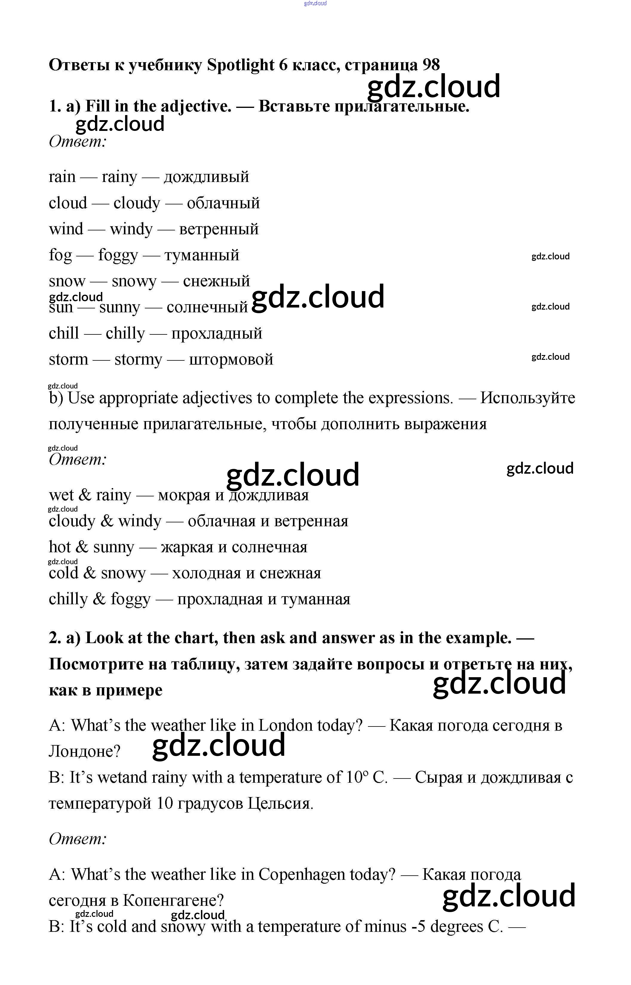 Ответ на задание 98 Учебник Английский язык  за 6 (шестой) класс Ваулина, Дули, Эванс, Подоляко Spotlight  2017