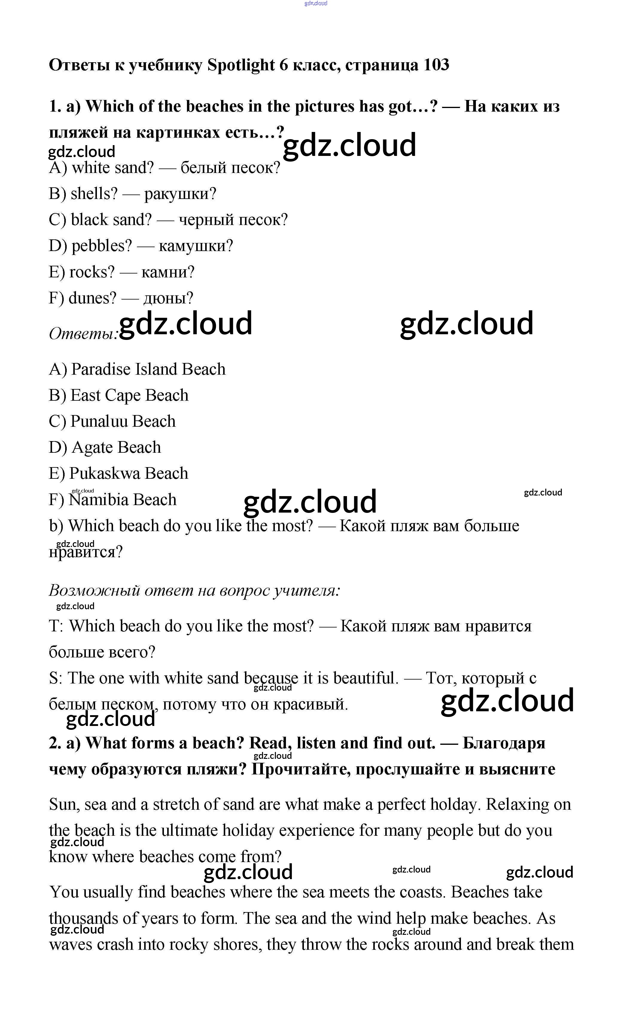 Ответ на задание 103 Учебник Английский язык  за 6 (шестой) класс Ваулина, Дули, Эванс, Подоляко Spotlight  2017