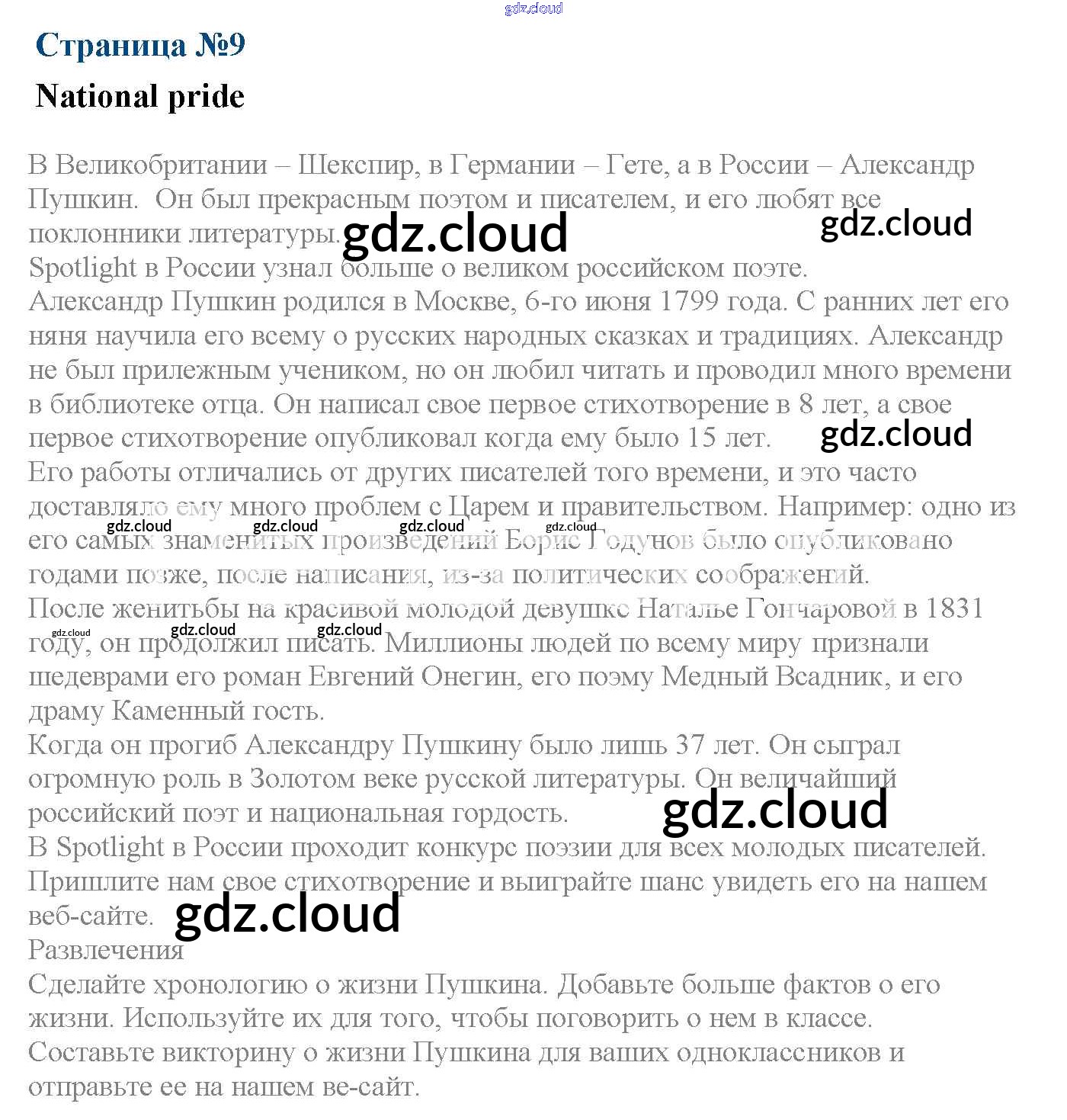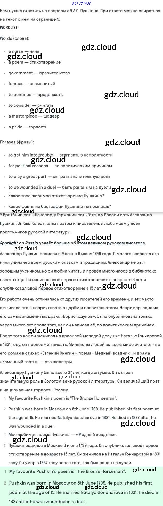 Ответ на задание 9 Учебник Английский язык  за 6 (шестой) класс Ваулина, Дули, Эванс, Подоляко Spotlight  2017