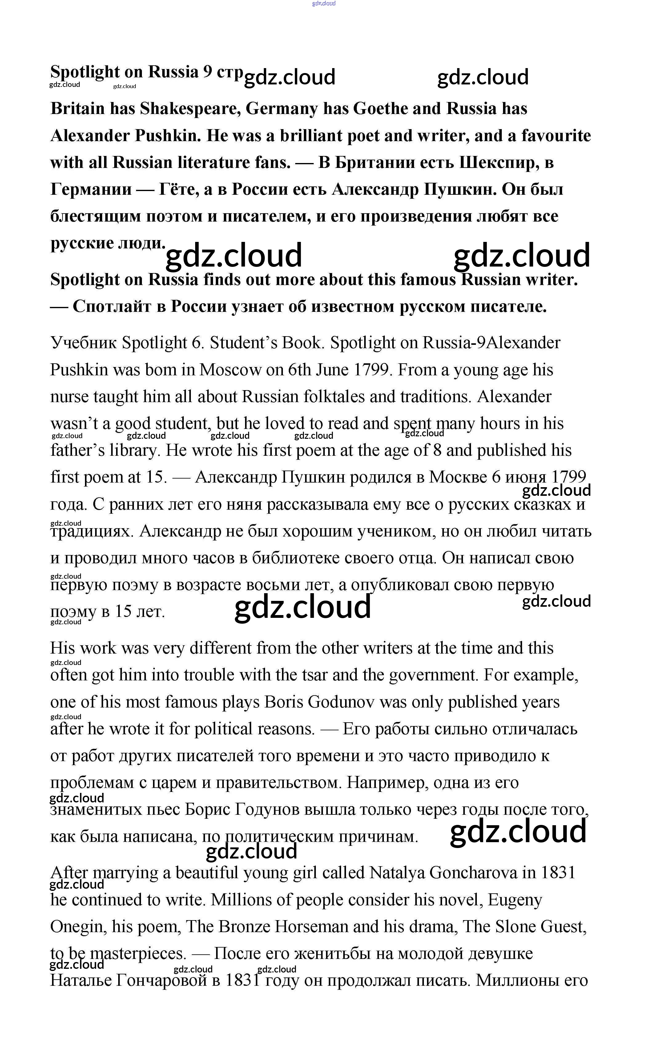 Ответы к  Spotlight on Russia. Страницы  по Английскому языку 6 класс Учебник Ваулина Spotlight   Просвещение