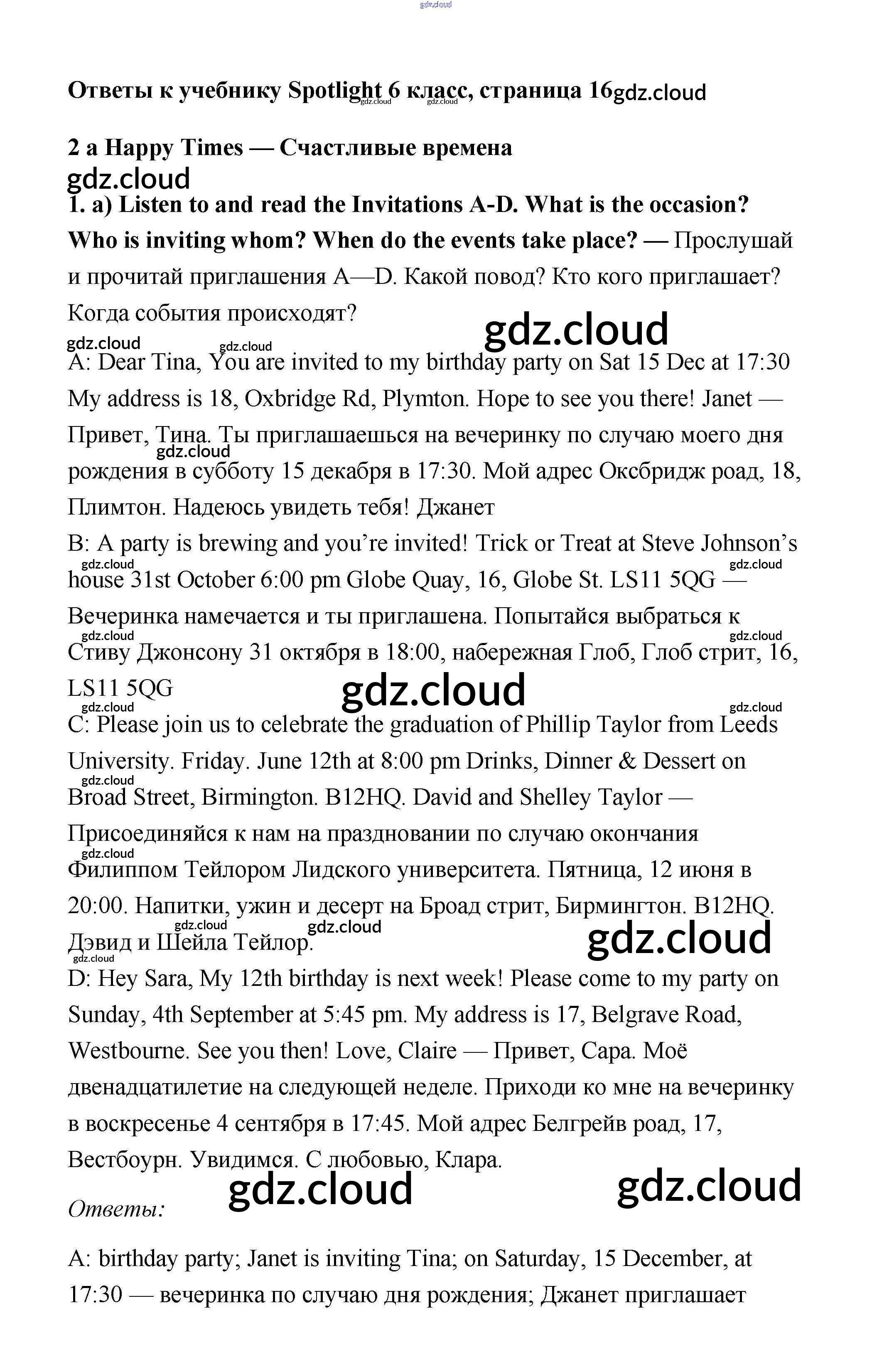Ответ на задание 16 Учебник Английский язык  за 6 (шестой) класс Ваулина, Дули, Эванс, Подоляко Spotlight  2017