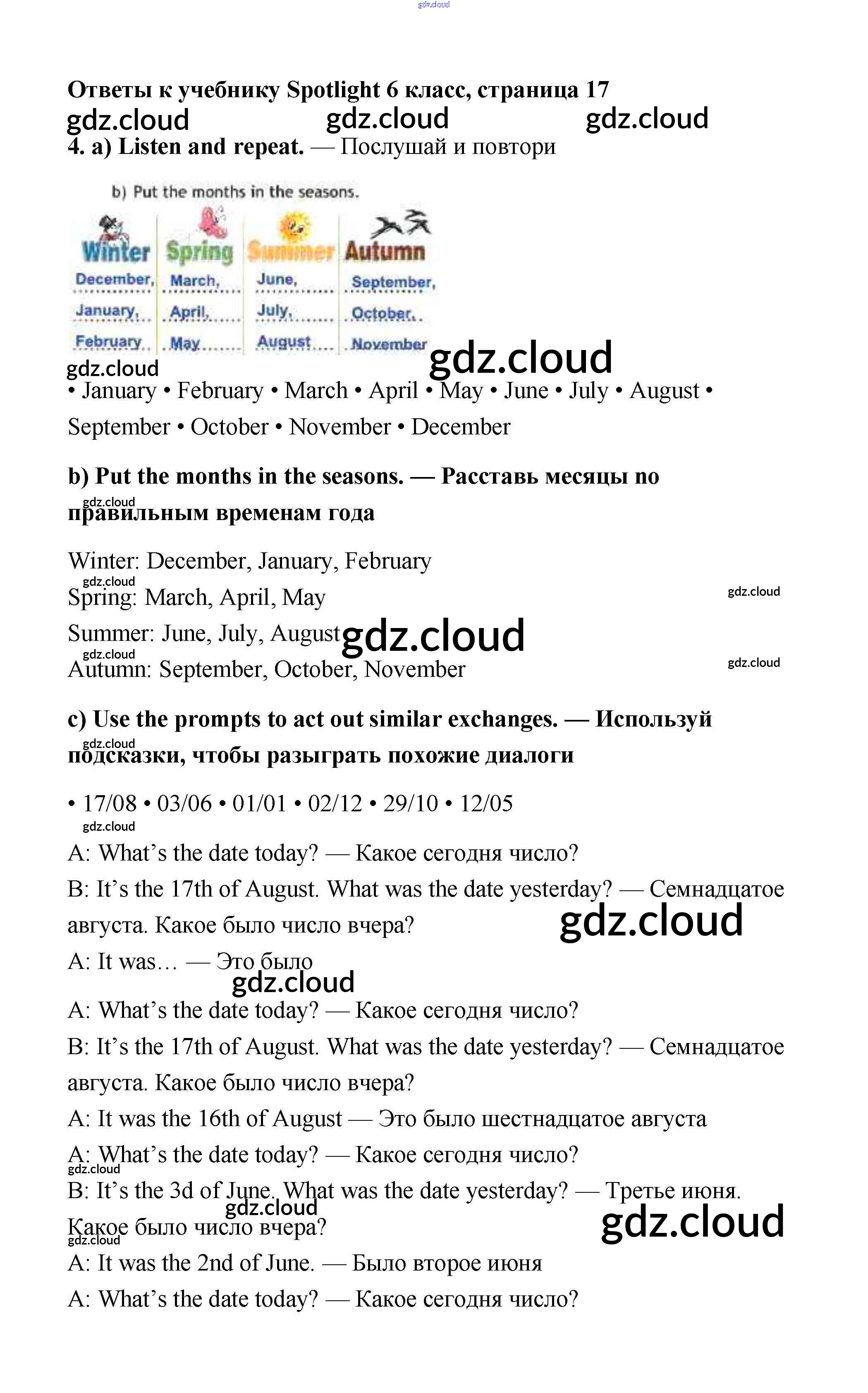 Ответ на задание 17 Учебник Английский язык  за 6 (шестой) класс Ваулина, Дули, Эванс, Подоляко Spotlight  2017