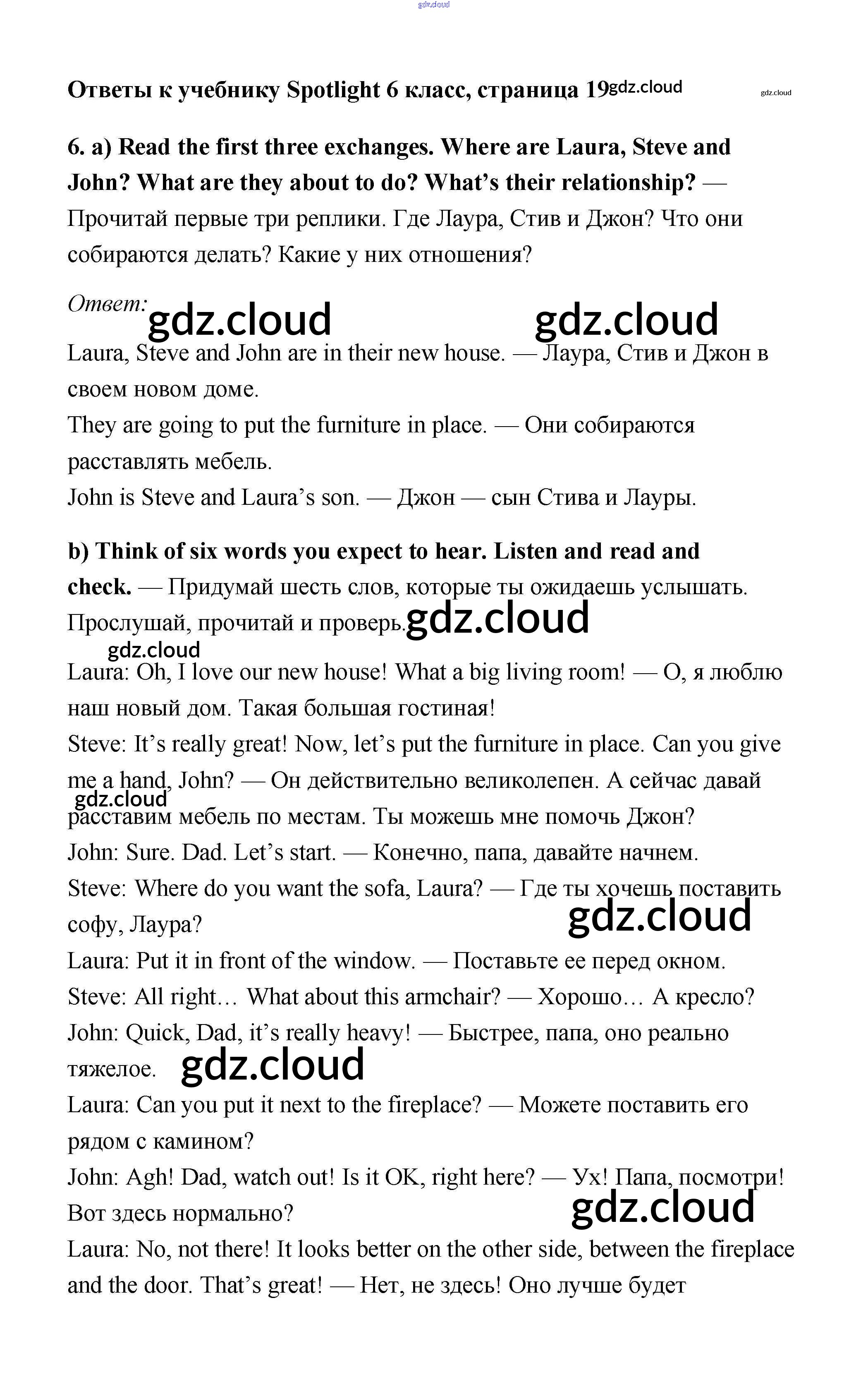 Ответ на задание 19 Учебник Английский язык  за 6 (шестой) класс Ваулина, Дули, Эванс, Подоляко Spotlight  2017