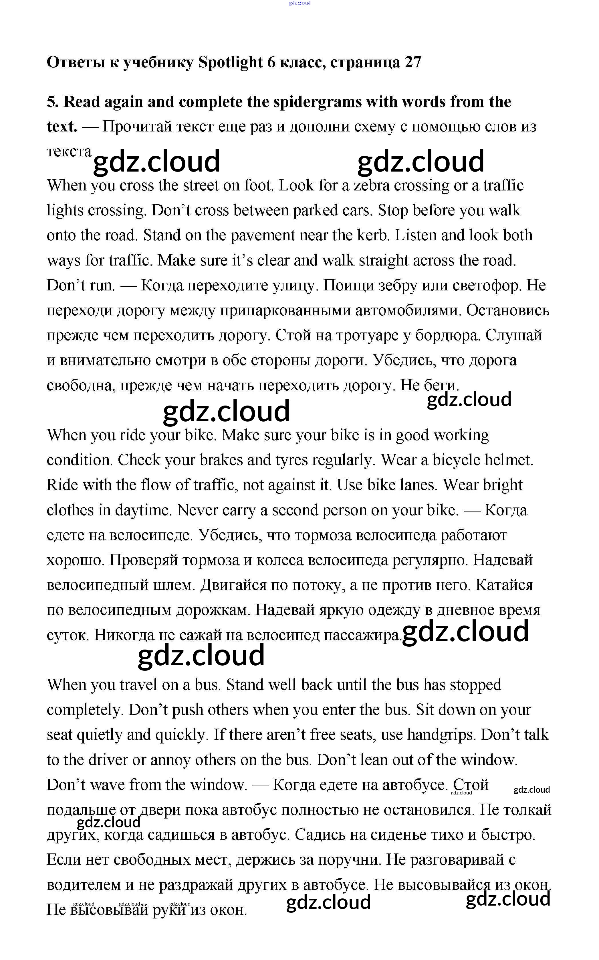 Ответ на задание 27 Учебник Английский язык  за 6 (шестой) класс Ваулина, Дули, Эванс, Подоляко Spotlight  2017