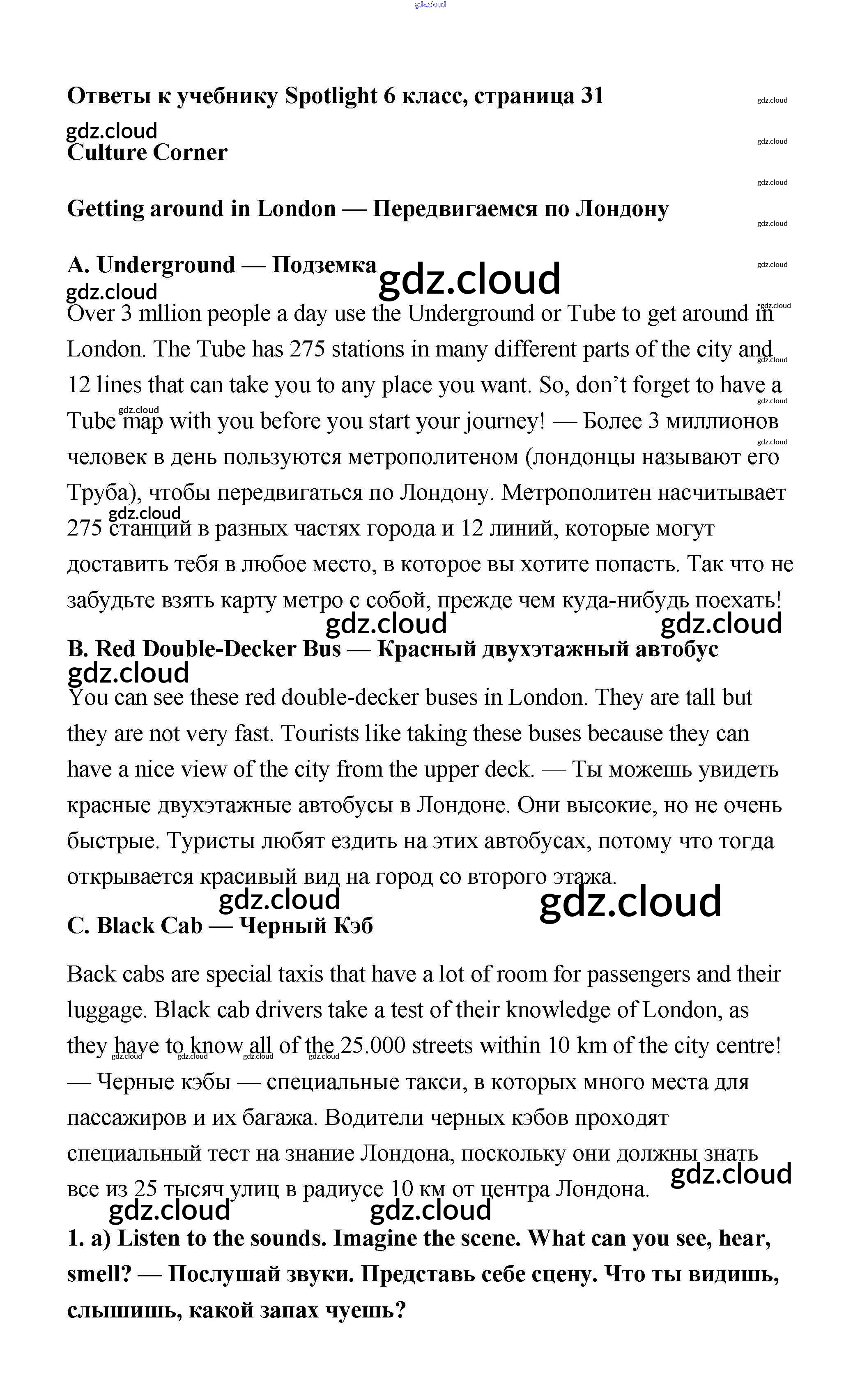 Ответ на задание 31 Учебник Английский язык  за 6 (шестой) класс Ваулина, Дули, Эванс, Подоляко Spotlight  2017