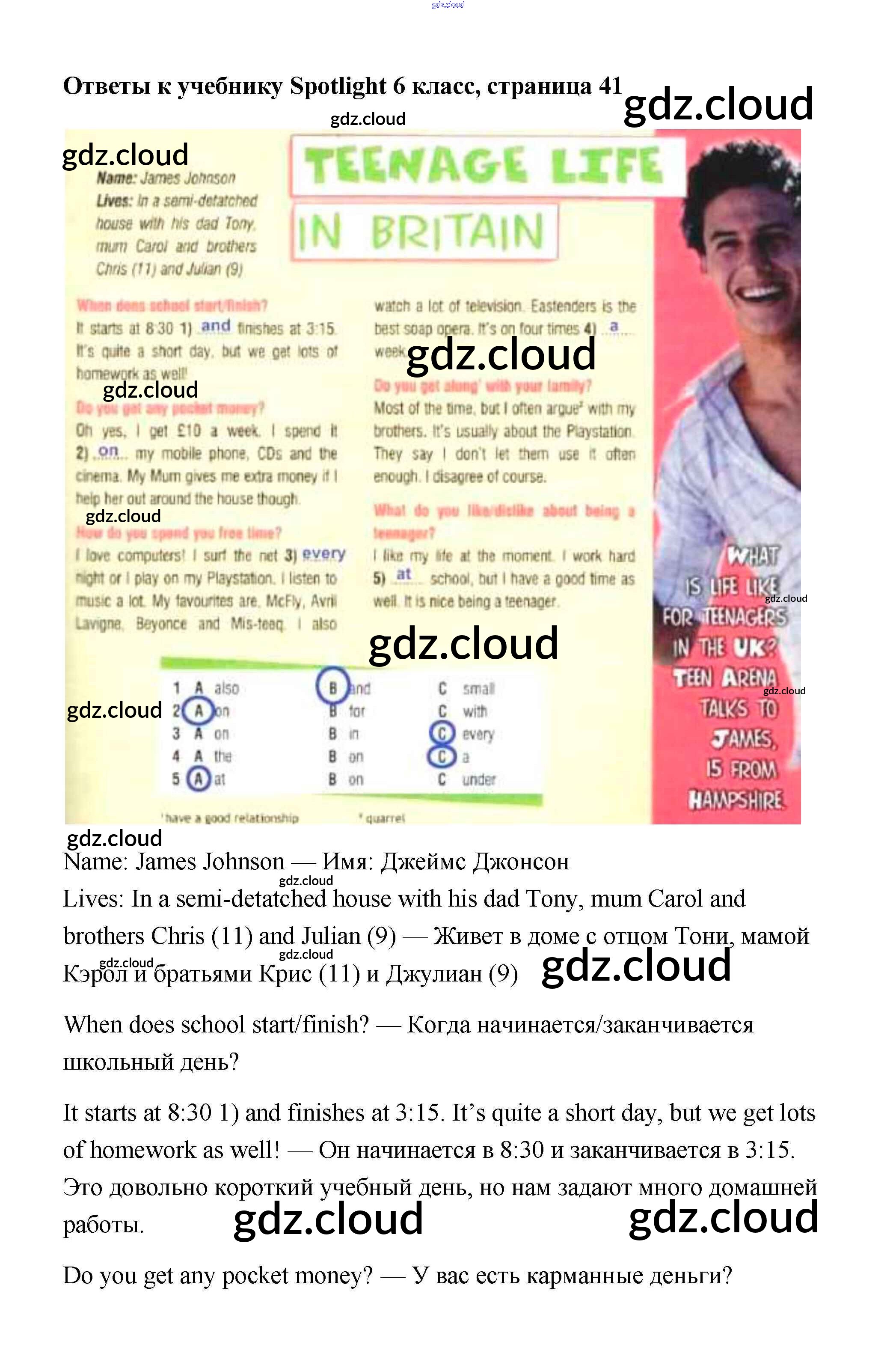 Ответ на задание 41 Учебник Английский язык  за 6 (шестой) класс Ваулина, Дули, Эванс, Подоляко Spotlight  2017