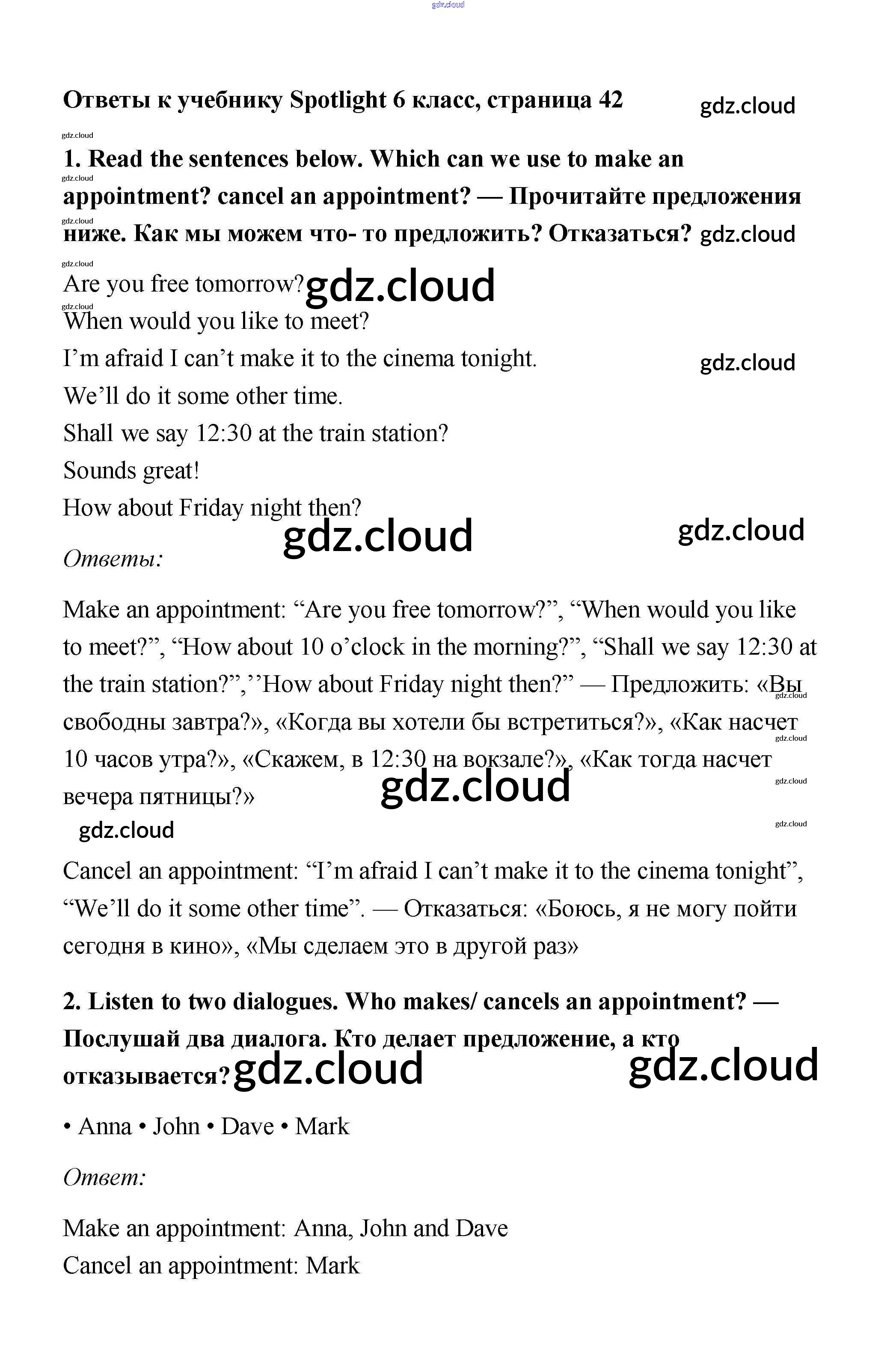 Ответ на задание 42 Учебник Английский язык  за 6 (шестой) класс Ваулина, Дули, Эванс, Подоляко Spotlight  2017