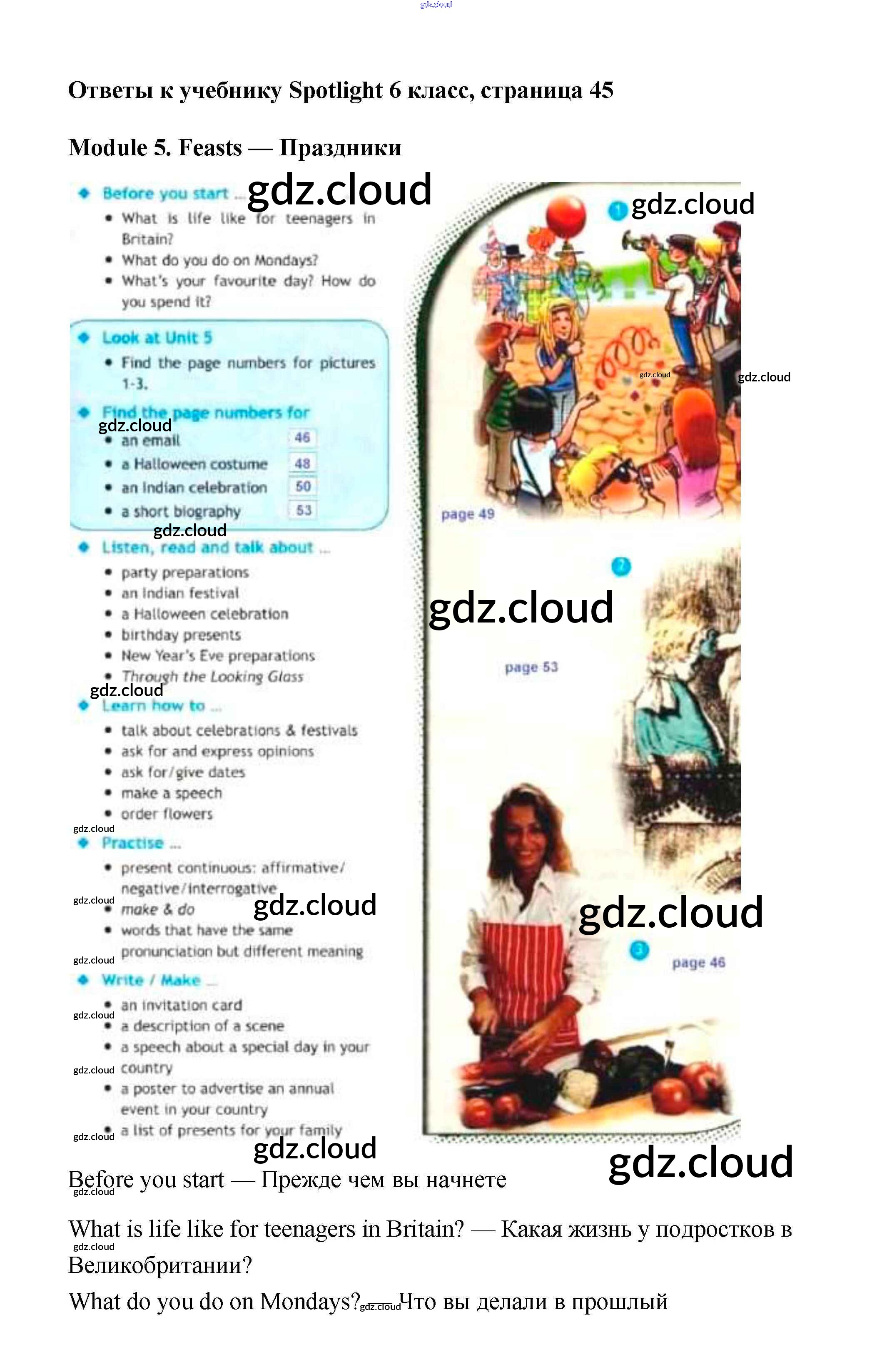 Ответ на задание 45 Учебник Английский язык  за 6 (шестой) класс Ваулина, Дули, Эванс, Подоляко Spotlight  2017