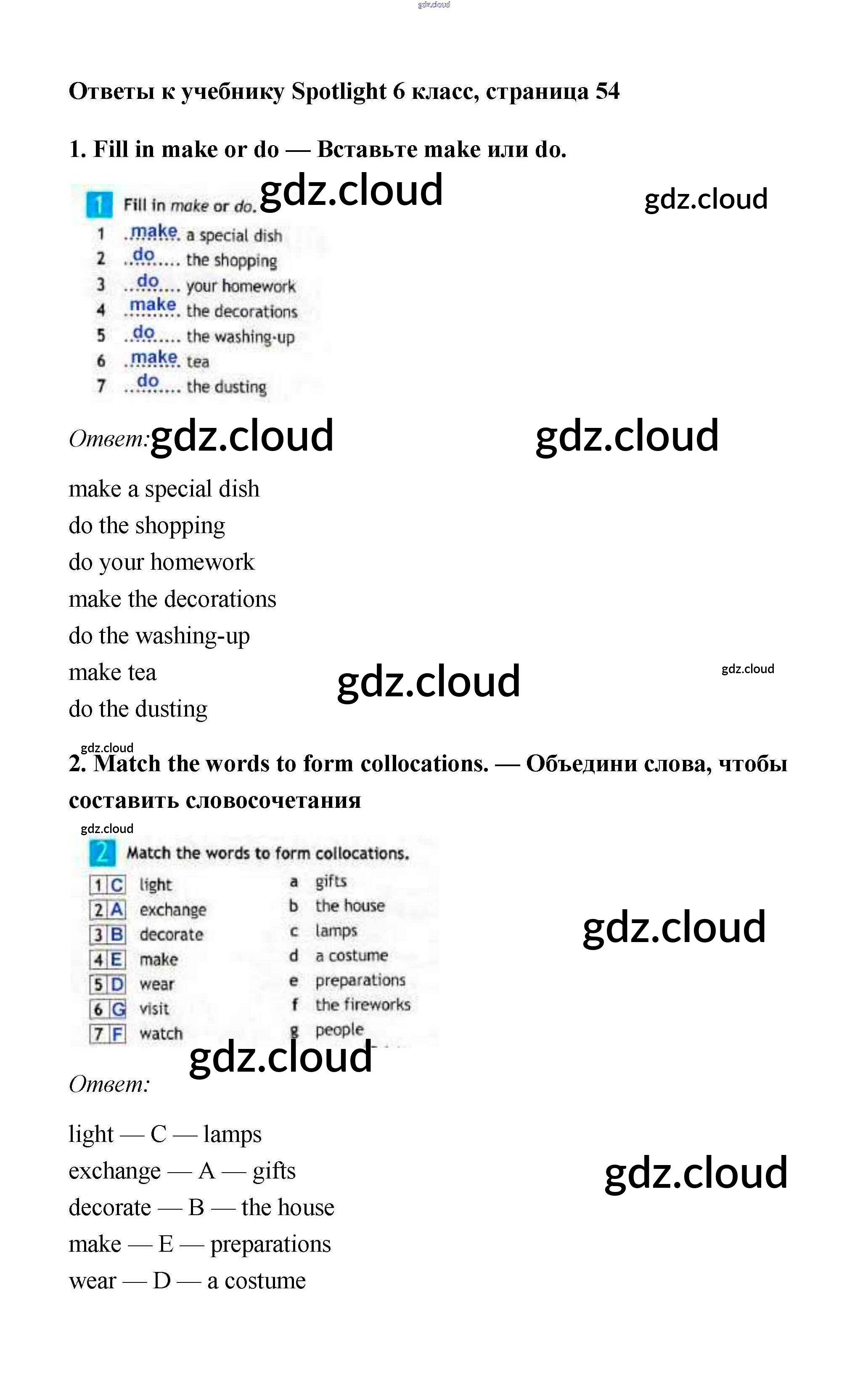 Ответ на задание 54 Учебник Английский язык за 6 (шестой) класс Ваулина, Дули, Эванс, Подоляко Spotlight 2017