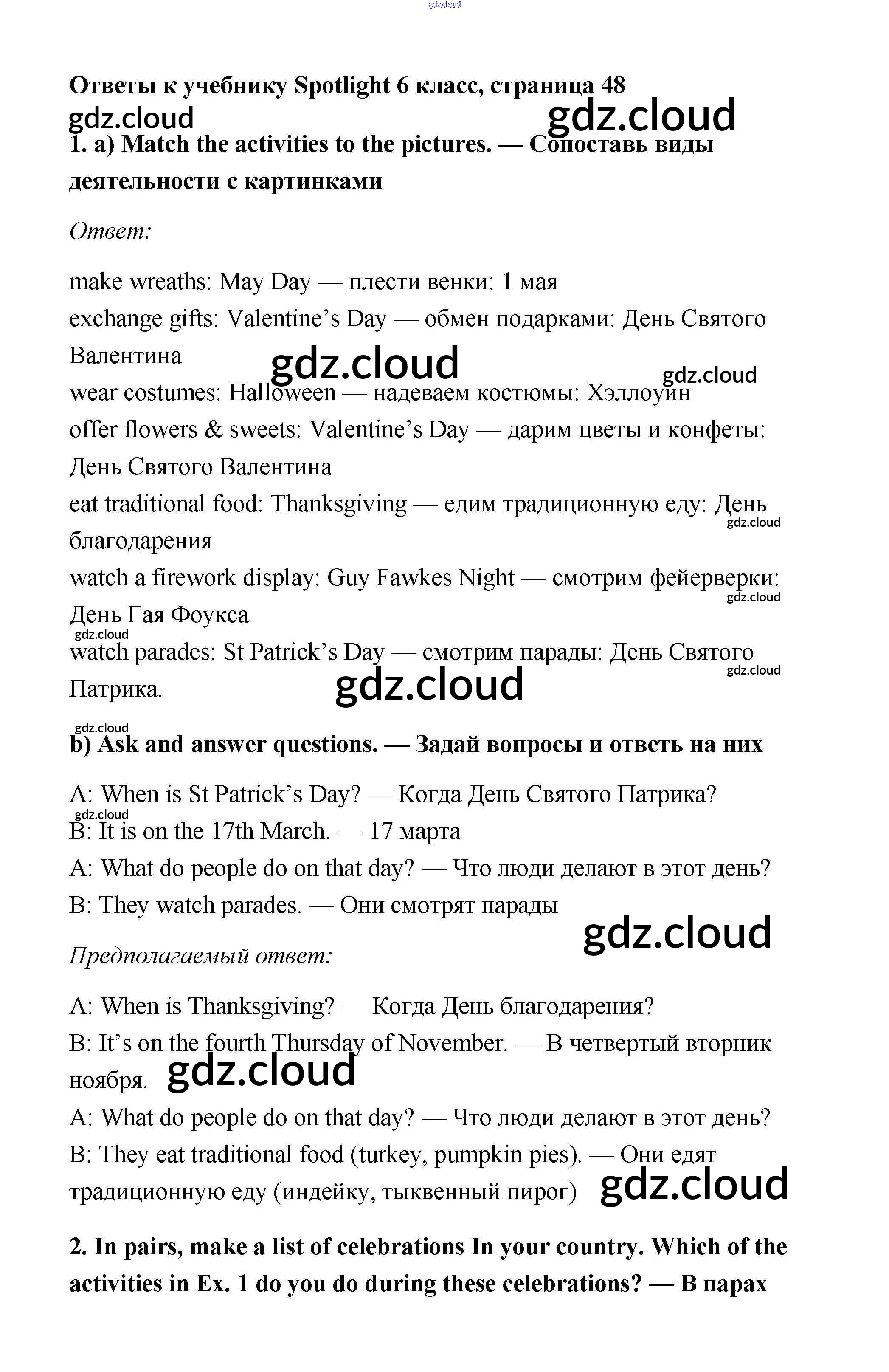 Ответ на задание 48 Учебник Английский язык  за 6 (шестой) класс Ваулина, Дули, Эванс, Подоляко Spotlight  2017