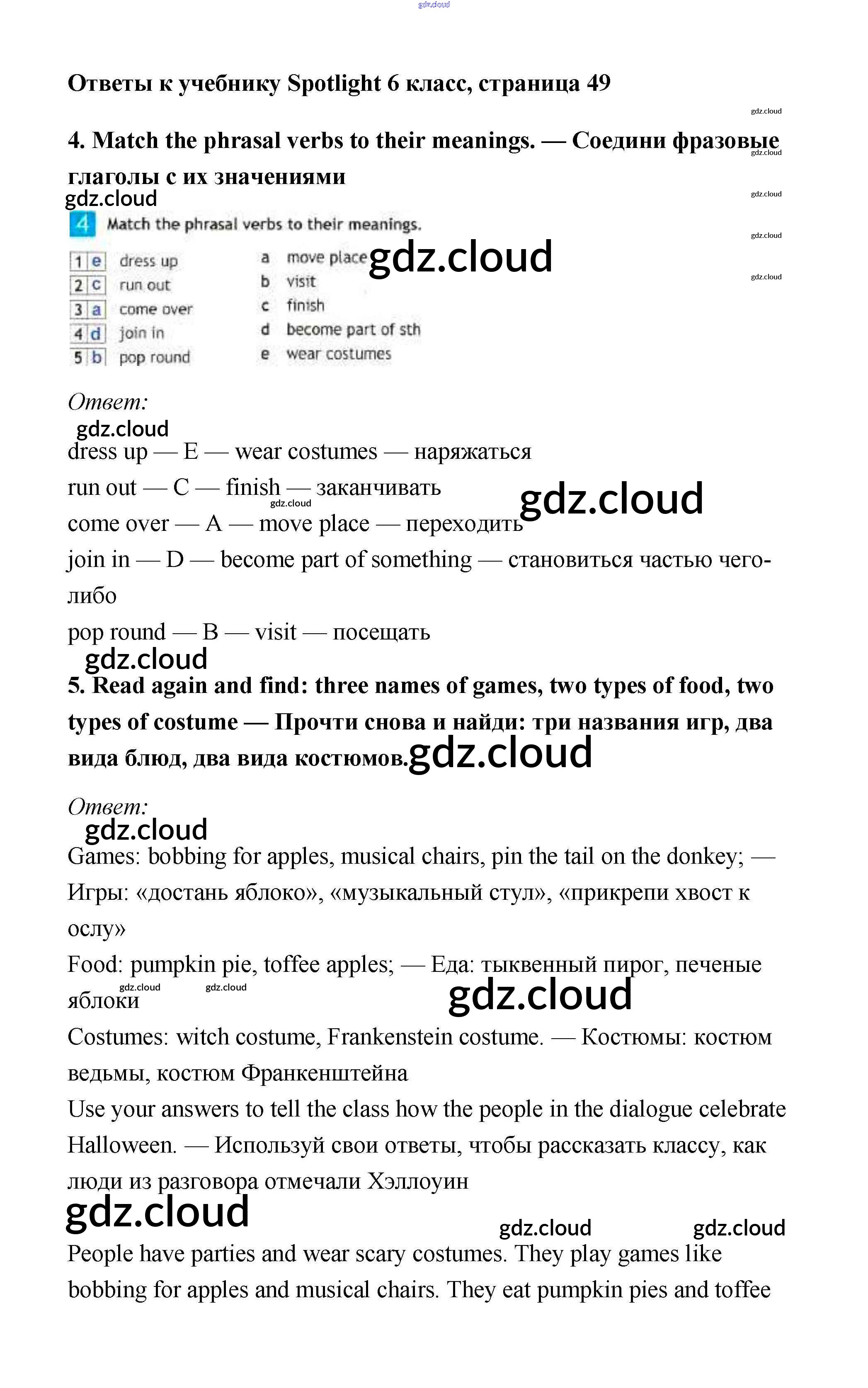 Ответ на задание 49 Учебник Английский язык  за 6 (шестой) класс Ваулина, Дули, Эванс, Подоляко Spotlight  2017