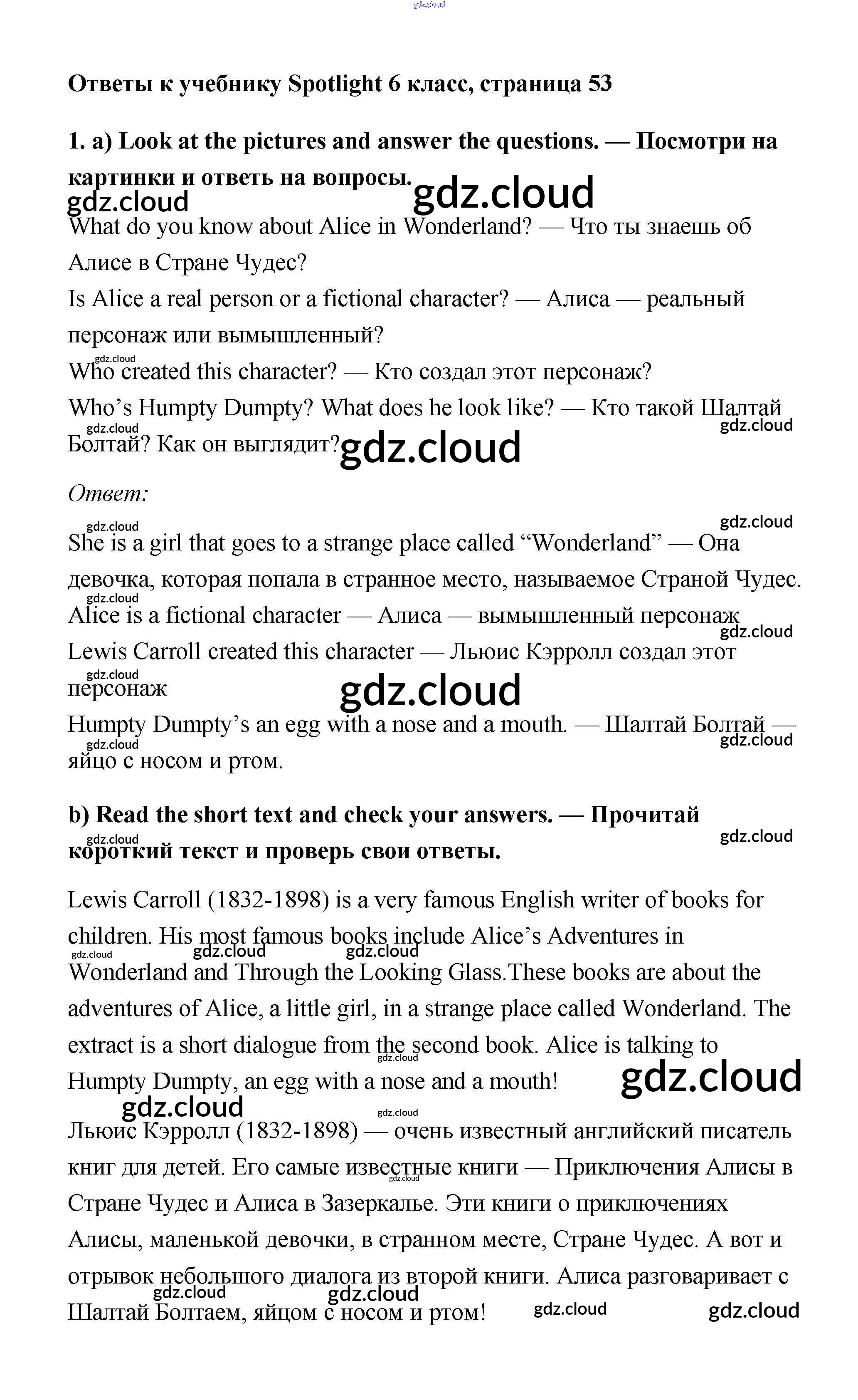 Ответ на задание 53 Учебник Английский язык  за 6 (шестой) класс Ваулина, Дули, Эванс, Подоляко Spotlight  2017