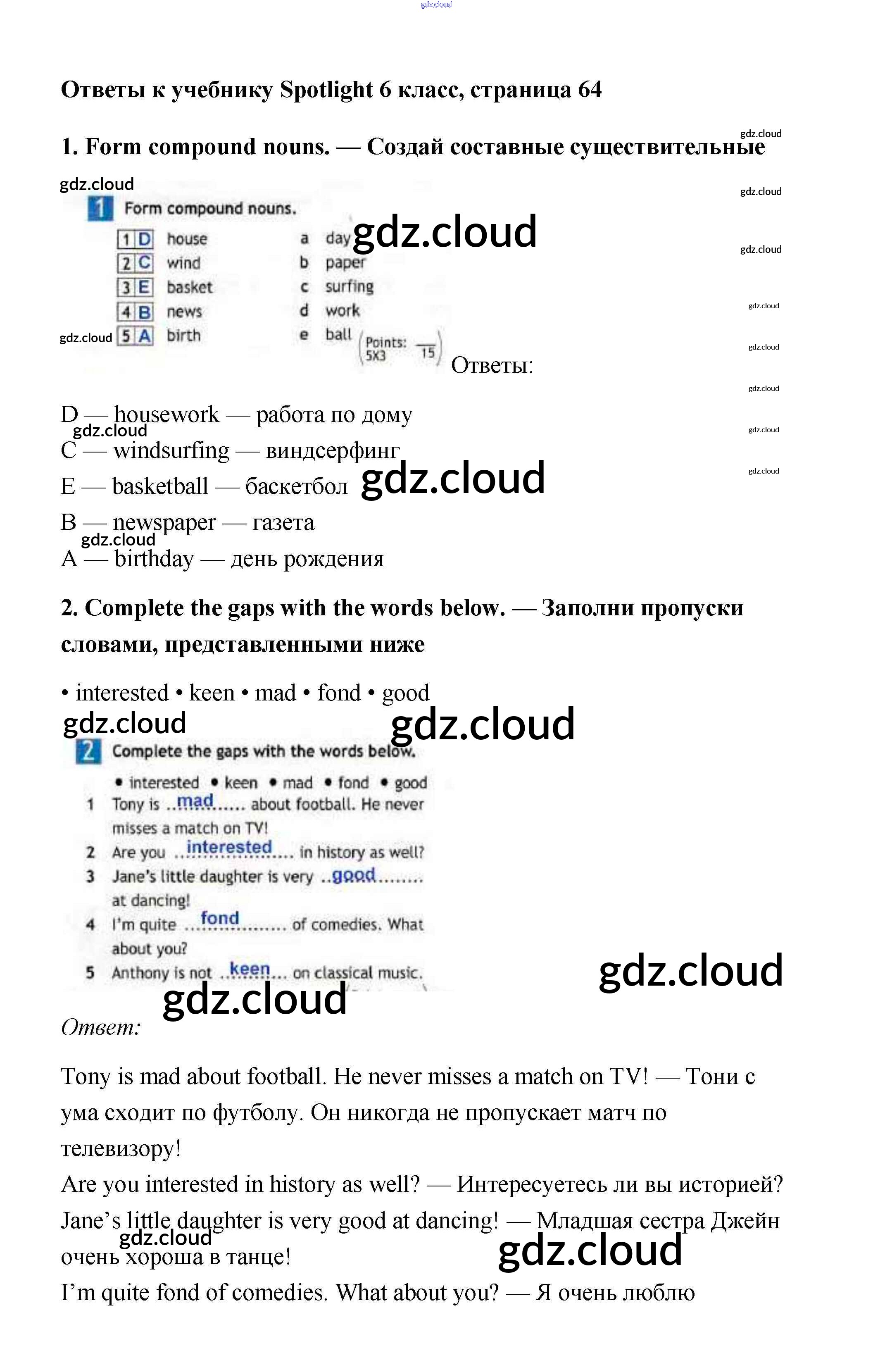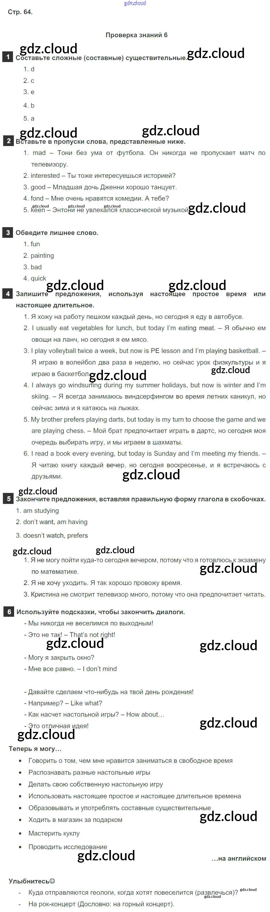 Ответ на задание 64 Учебник Английский язык  за 6 (шестой) класс Ваулина, Дули, Эванс, Подоляко Spotlight  2017