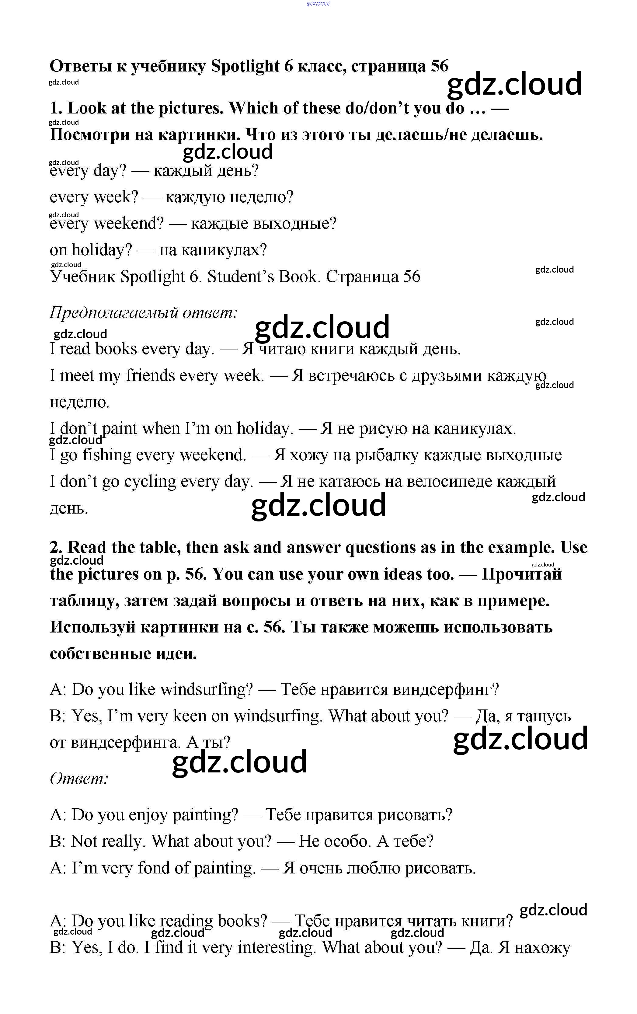 Ответ на задание 56 Учебник Английский язык  за 6 (шестой) класс Ваулина, Дули, Эванс, Подоляко Spotlight  2017