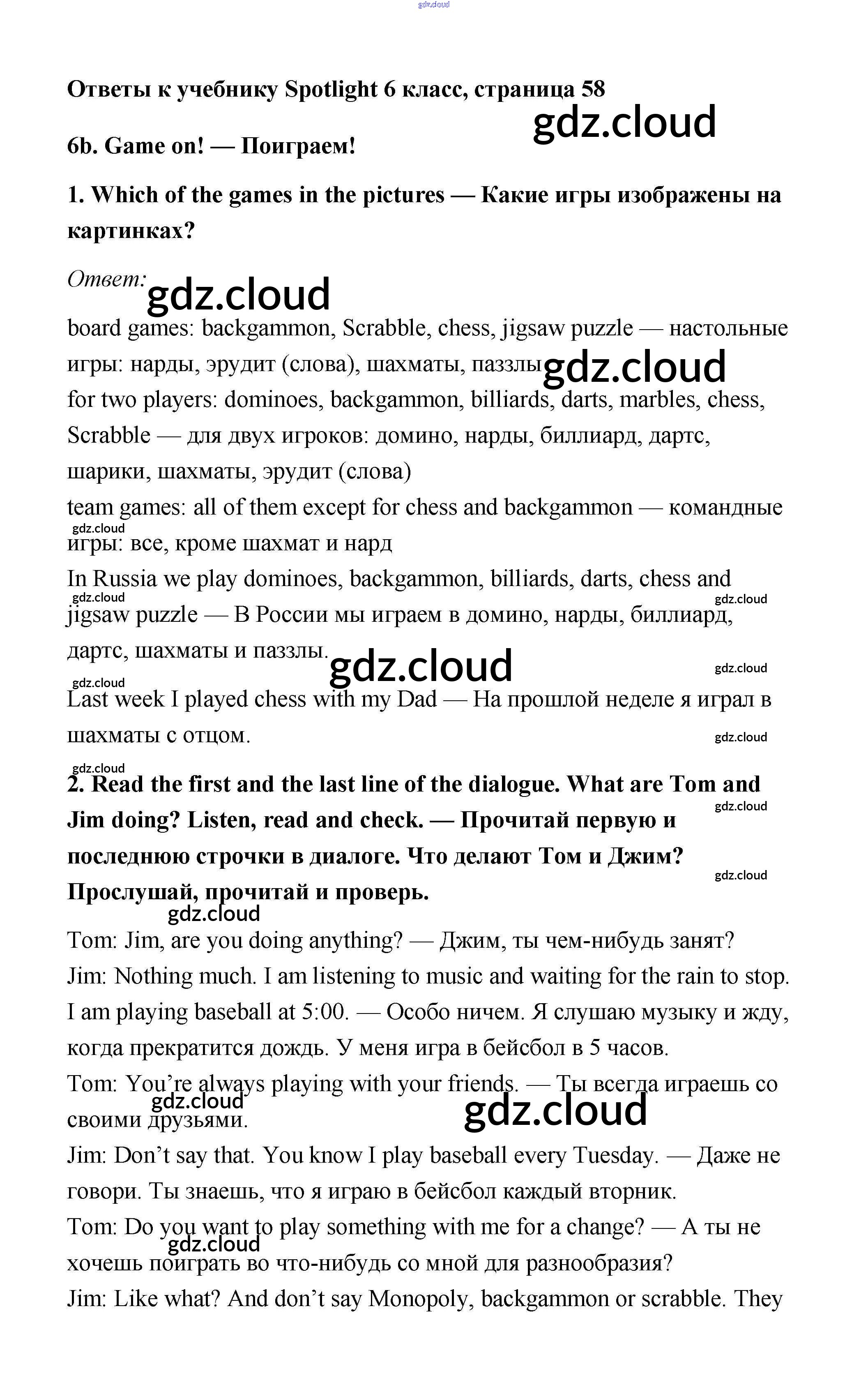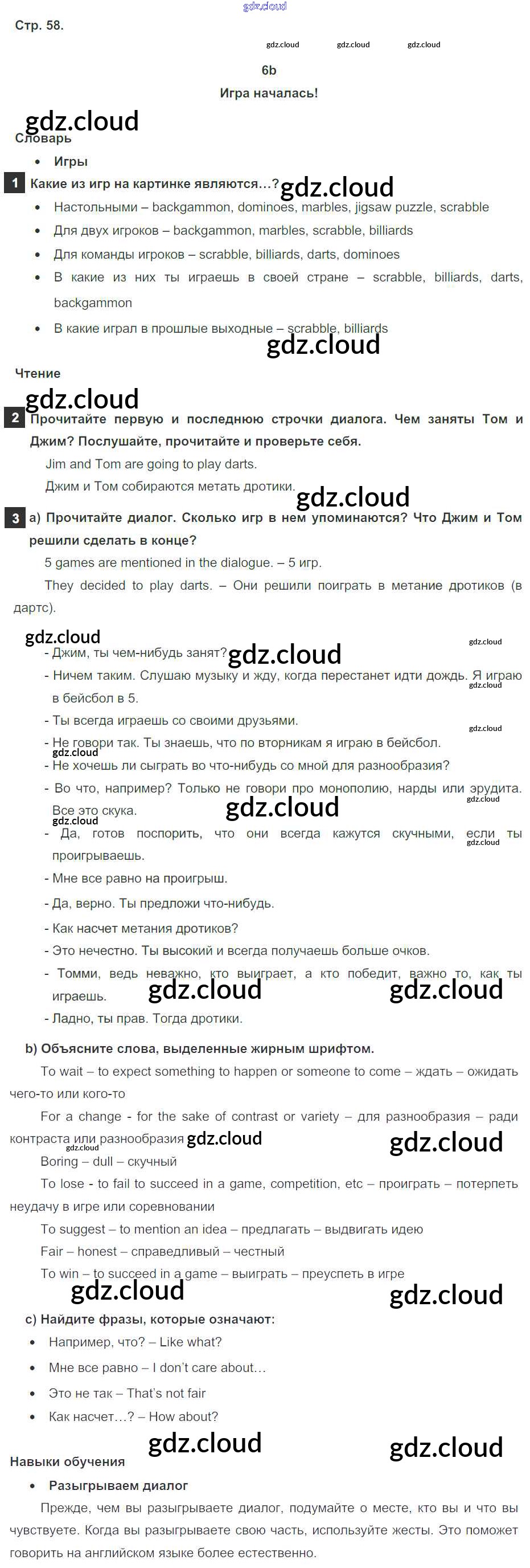 Ответ на задание 58 Учебник Английский язык  за 6 (шестой) класс Ваулина, Дули, Эванс, Подоляко Spotlight  2017