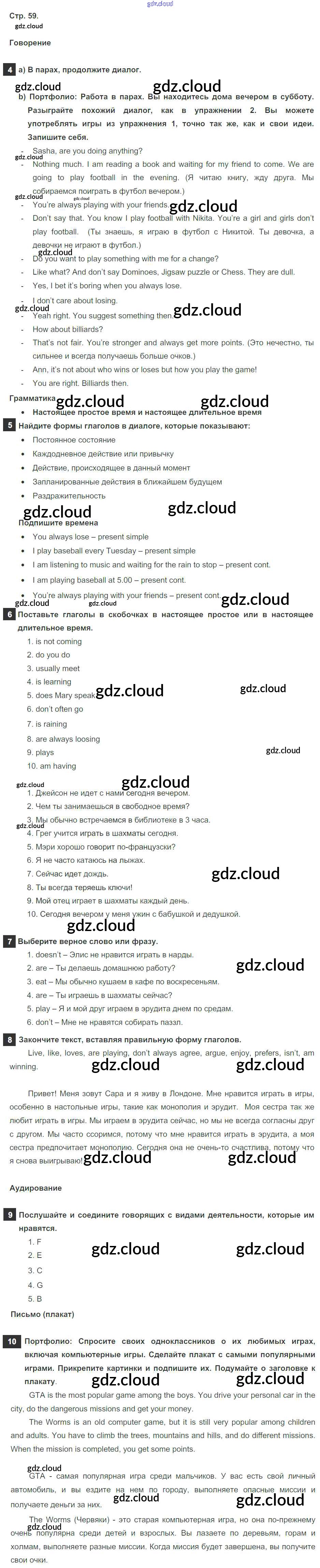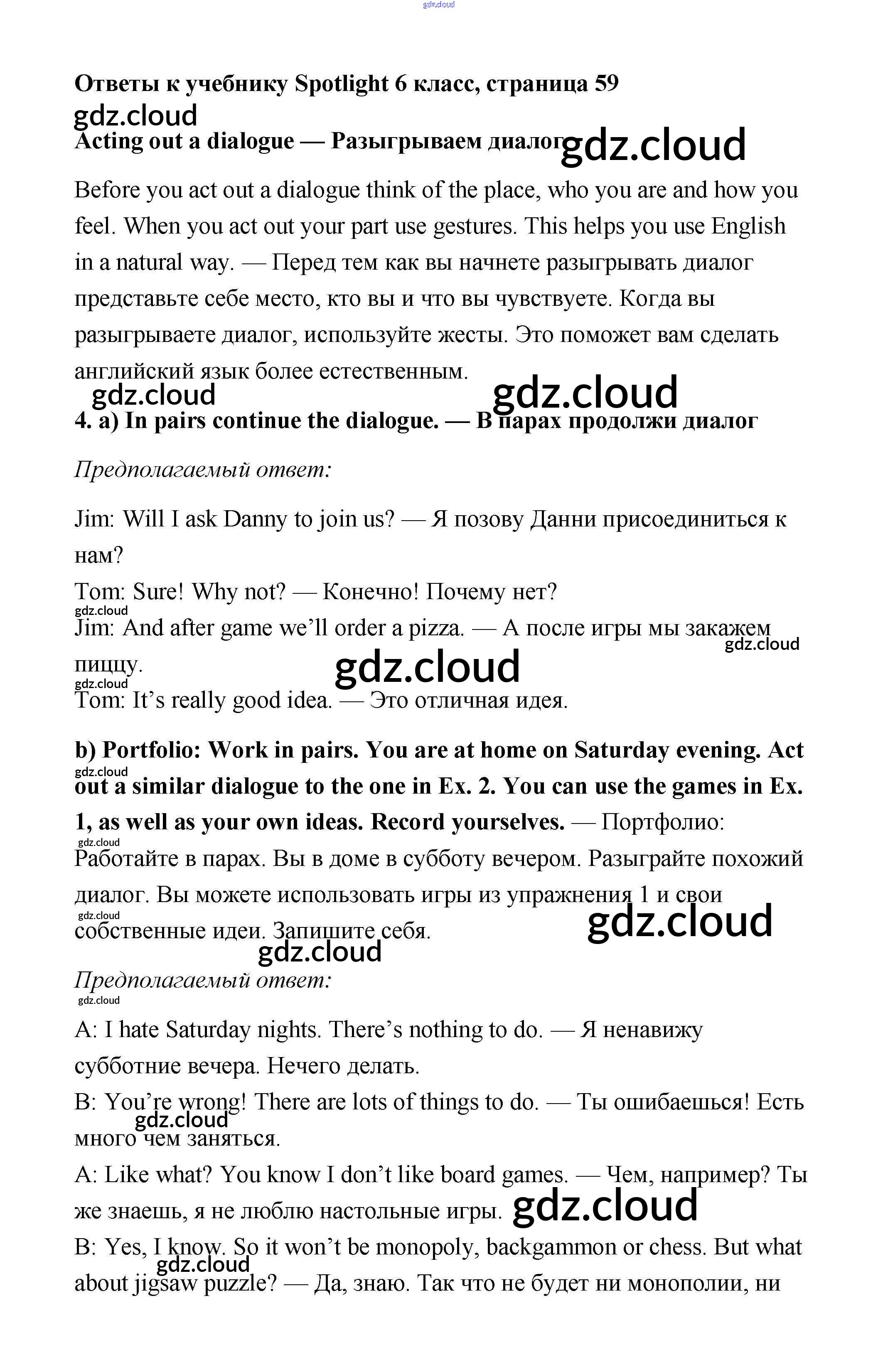 Ответ на задание 59 Учебник Английский язык  за 6 (шестой) класс Ваулина, Дули, Эванс, Подоляко Spotlight  2017